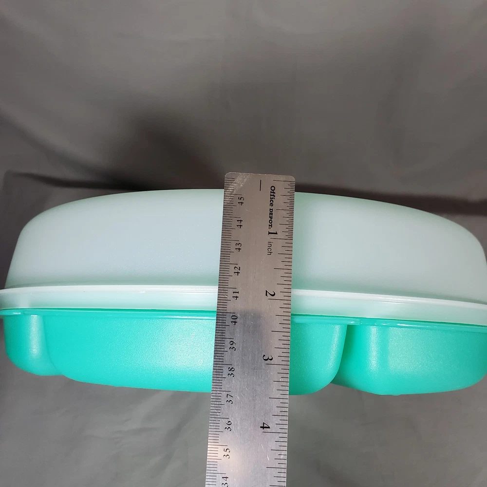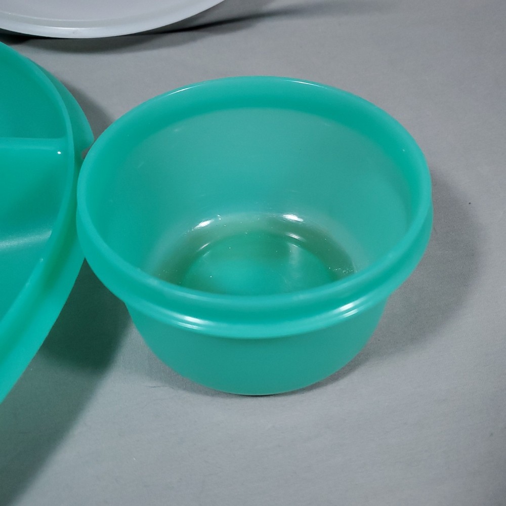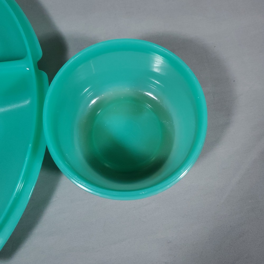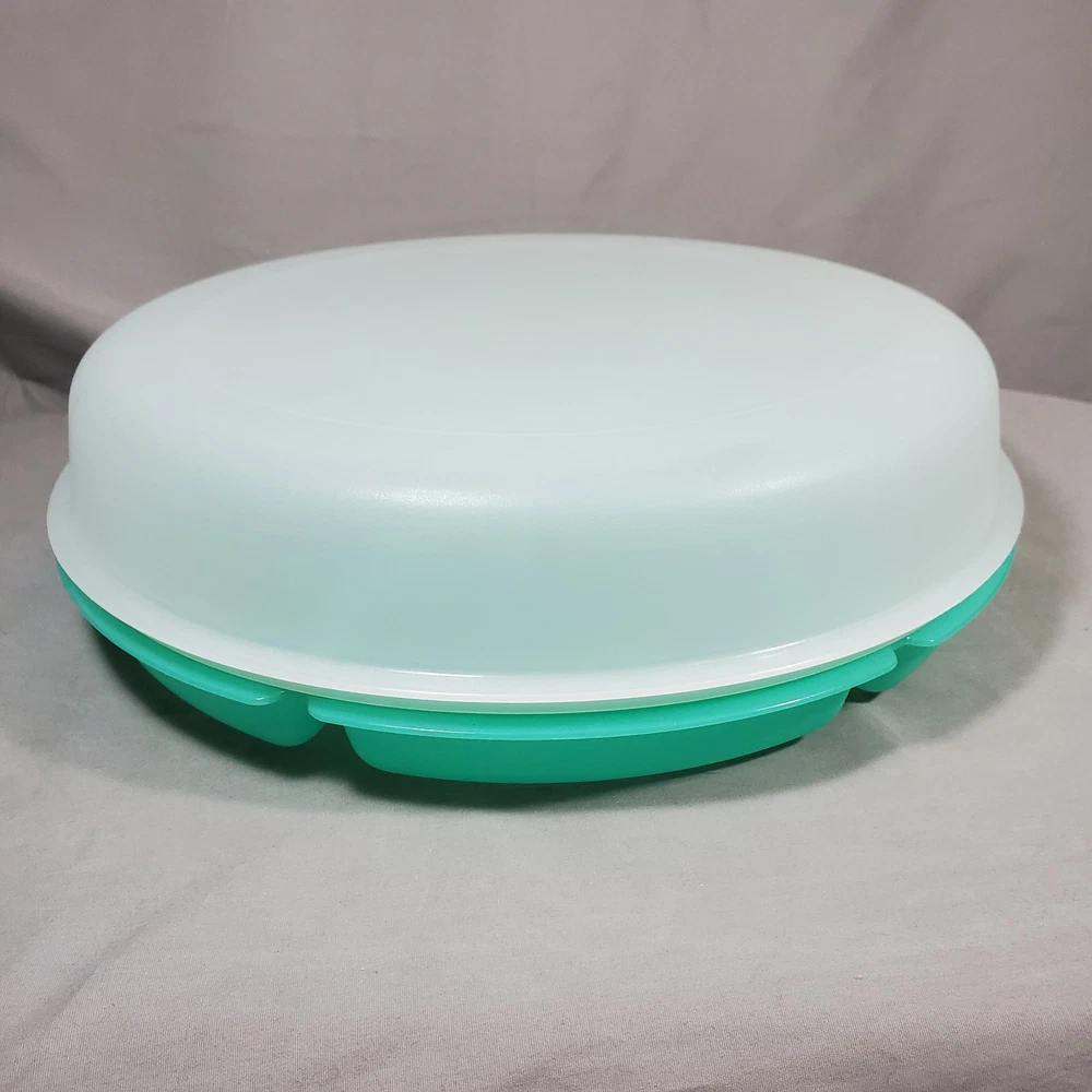 Item: Tupperware Green Divided 14" Serving Tray with Lid & Dip Bowl 1665 1666 1667 VTG Brand: Tupperware Model: Divided Serving Tray with Dip Bowl Color: Green Material: Plastic Height: Approximately 3.5 inches Diameter: Approximately 14 inches Slots: 6 Condition: Pre-owned - No noticeable issues Shipping: USPS