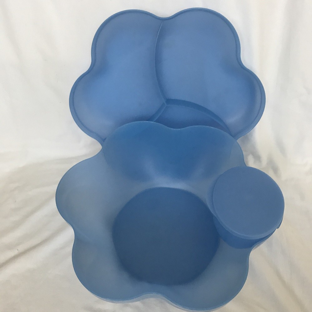 Tupperware Large Blue Flower Shape Chip Veggie Dip Bowl Set 4 pieces #4624A. **missing one of the side clip on bowls**