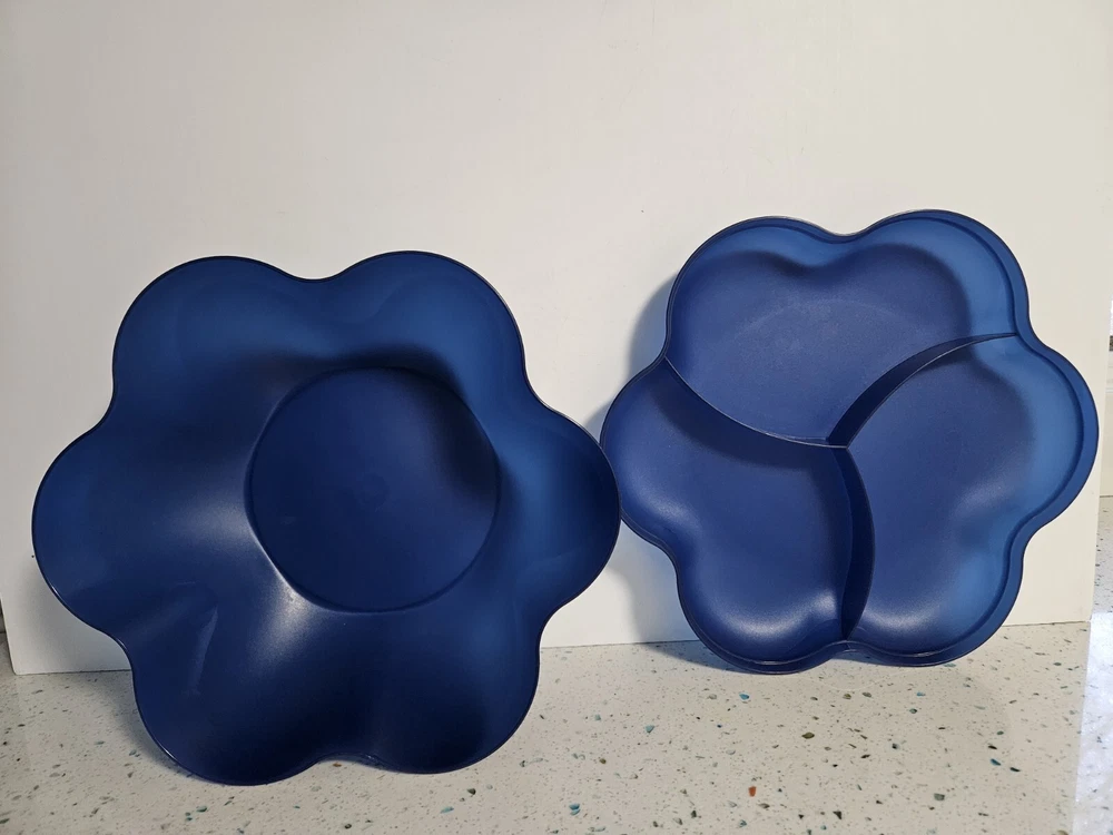 These are pre-owned, and they are still in very good condition. The chip & Dip is about 14" in diameter and 6.25" high. The lazy Susan Carousel tray is about 15.5" in diameter and 1" high. Please view all pictures for more details. Please feel free to contact me if you have any questions. No return. Sorry folks, I am not able to ship to the following states: Alaska or Hawaii. Please check out my other listing. Thanks.