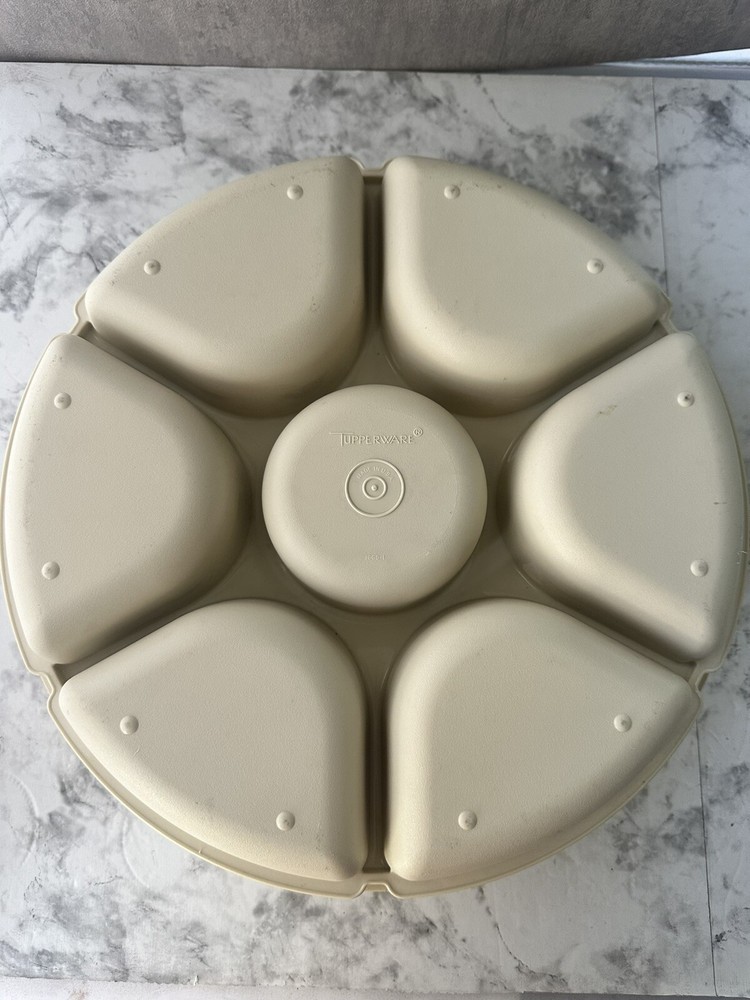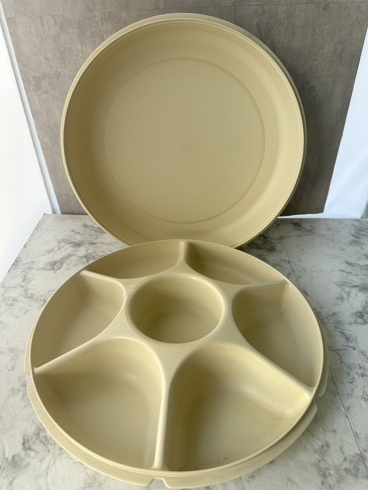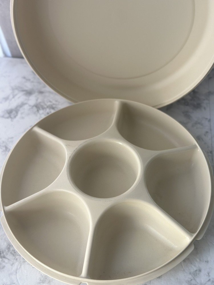 Tupperware Large Divided Serving Tray Veggies Chips and Dip Container Vintage Great condition, normal wear and tear.. no cracks or chips, refer to photos for further details. Item is pictured as is, message me for any questions. Ready to ship next day.
