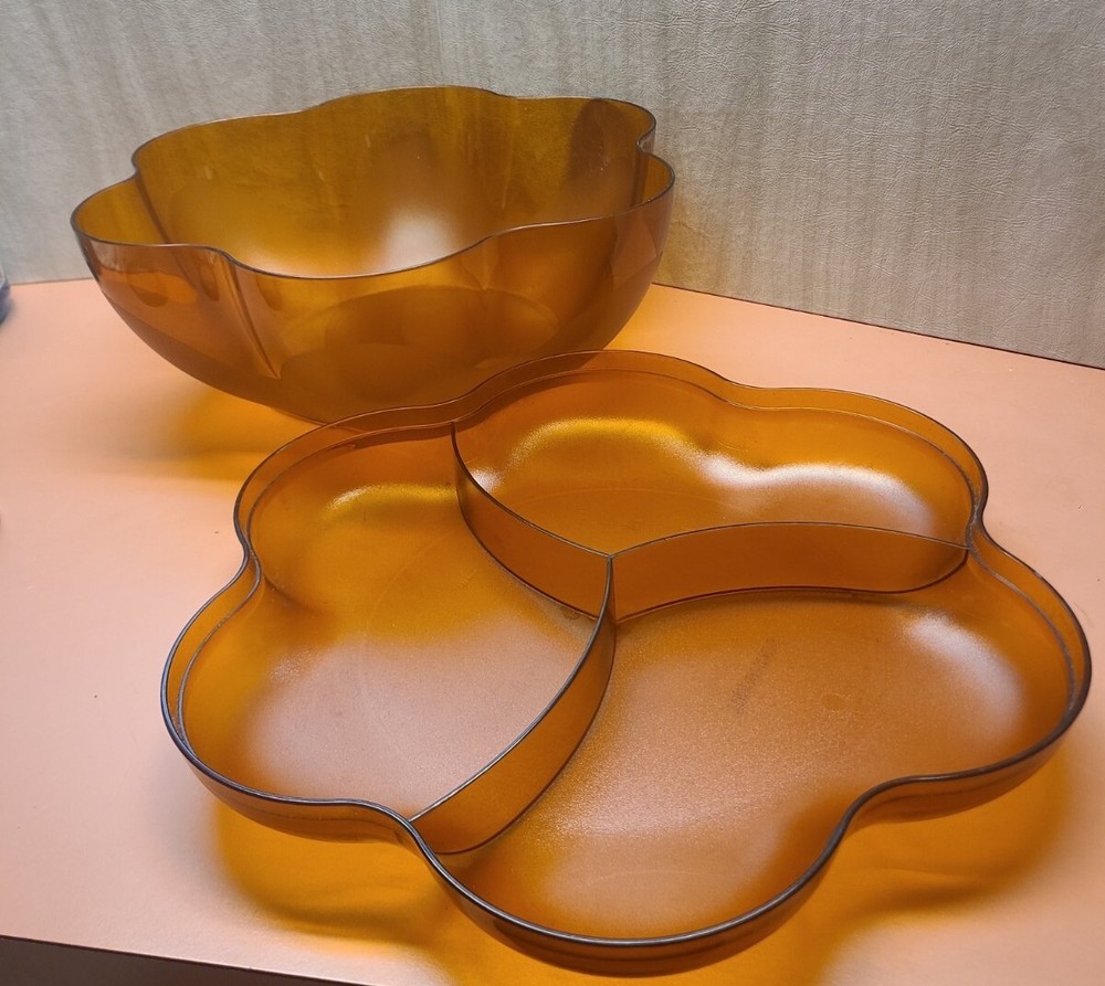 Tupperware Large Flower Shape Chip And Dip Salad Bowl 4624A-1 Amber. Make an offer....