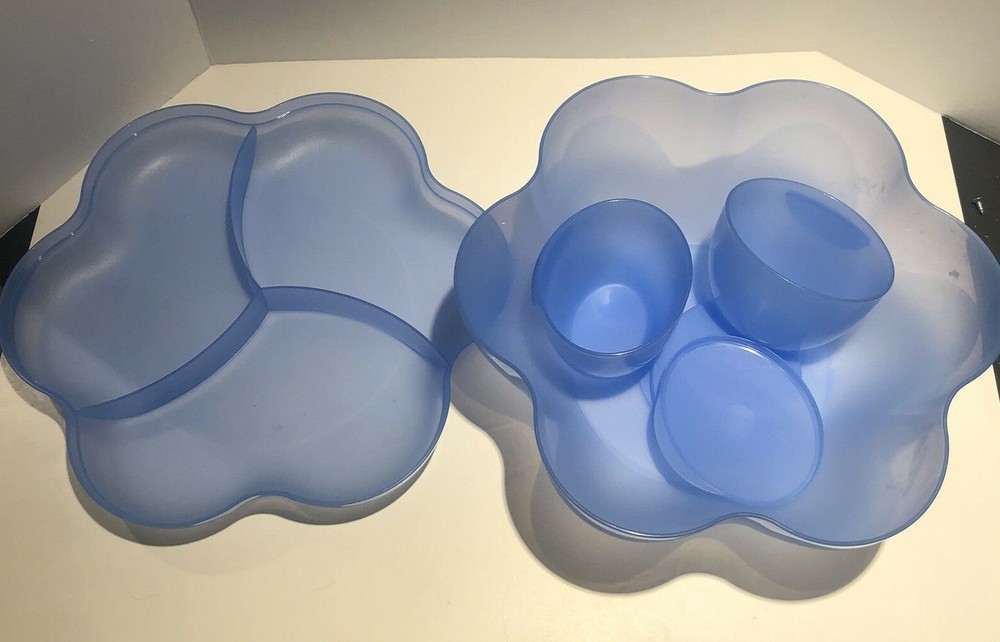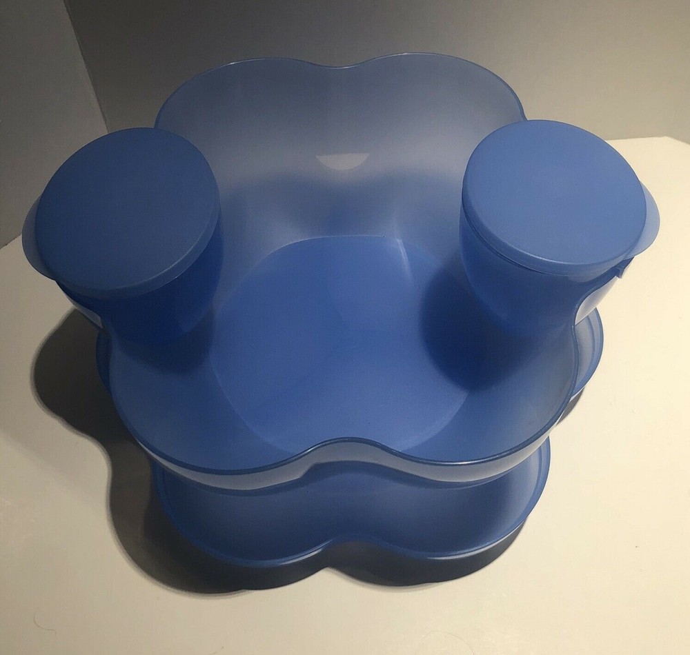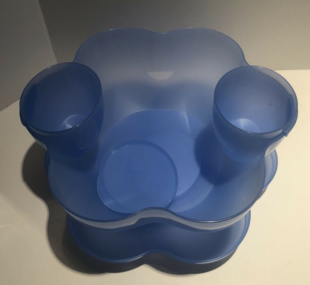 Tupperware Open House Chip N Dip Salad Punch Bowl & Lid Tray Large Serving. The color is blue. It includes 2 dip bowls as shown. Condition is new. Never been used. I do combine shipping so please let me know what you would like to combine. Comes from a smoke free home! No returns. If you have any questions, please feel free to contact me. Please check out my store to view other items available to purchase! Thank you for looking! A1/A5