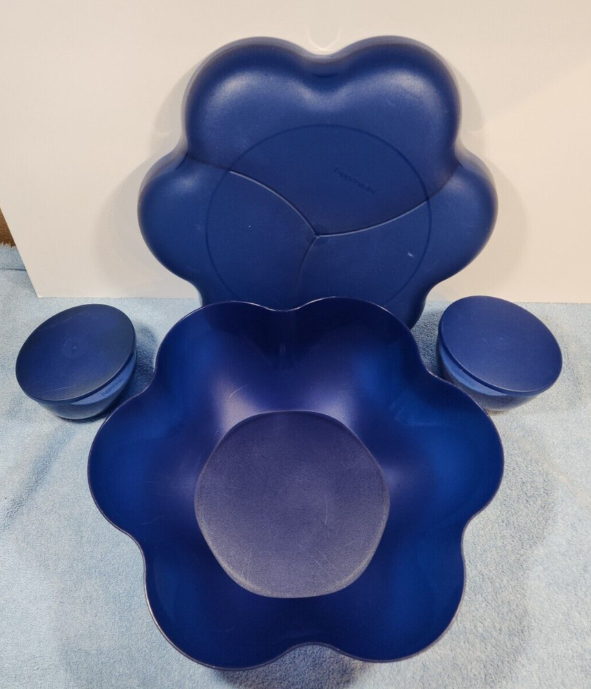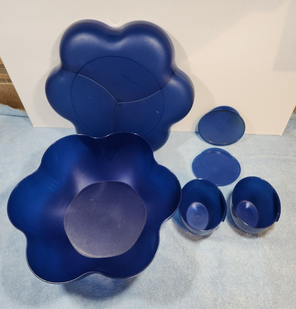 Tupperware Open House Chip & Dip Complete Set Party Bowl Dark Blue 4624A. These items are used in good condition, some scuffs and wear see pictures. I am always happy to answer questions or take anoth...