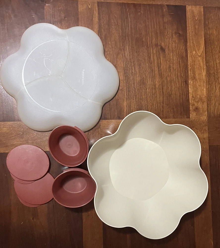 Tupperware Open House™ Collection Chip ‘N Dip, Flower, Complete Set, Latte Color...