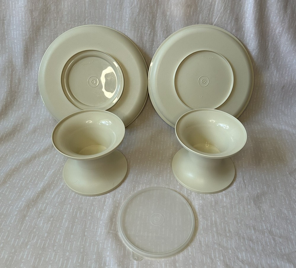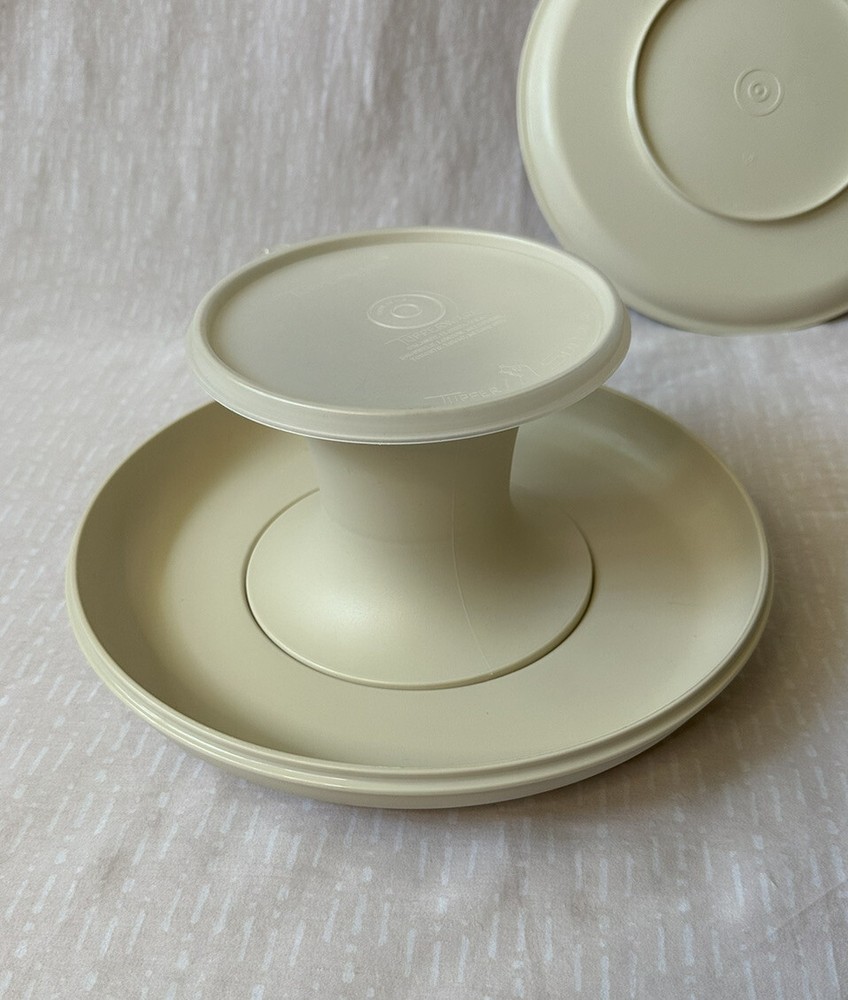 Tupperware Party Set Serve It All- Tan Beige Dip Tray Pedestal - Extra Dip Bowl. Tupperware Serve It All set in Tan. Can be used as dip platter, pedestal, cake plate. Includes extra dip/pedestal piece.