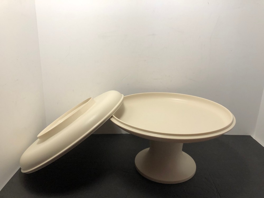 Tupperware Serve-It-All Pedestal Set 1531 1532 1533 Cake Stand Chip Dip Pie Dish Please see photos for details, there are no issues that I could find....