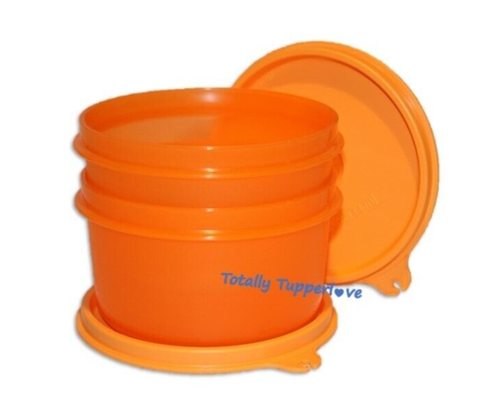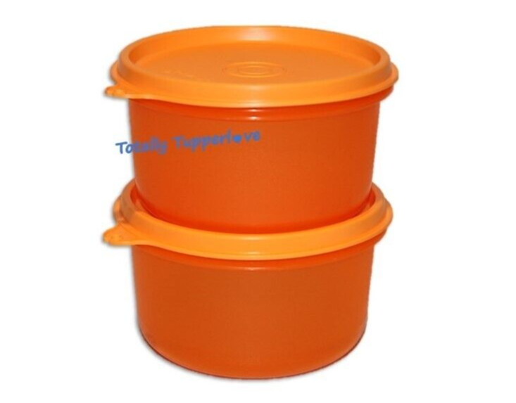 New Tupperware Serving Center Bowls Set of 2 in Orange 14 oz. Capacity Each Fits in the Large Serving Center (not included) Virtually Liquid and Airtight Seals Dishwasher Safe & BPA Free Please Note: color shade may appear slightly different in person than in photos