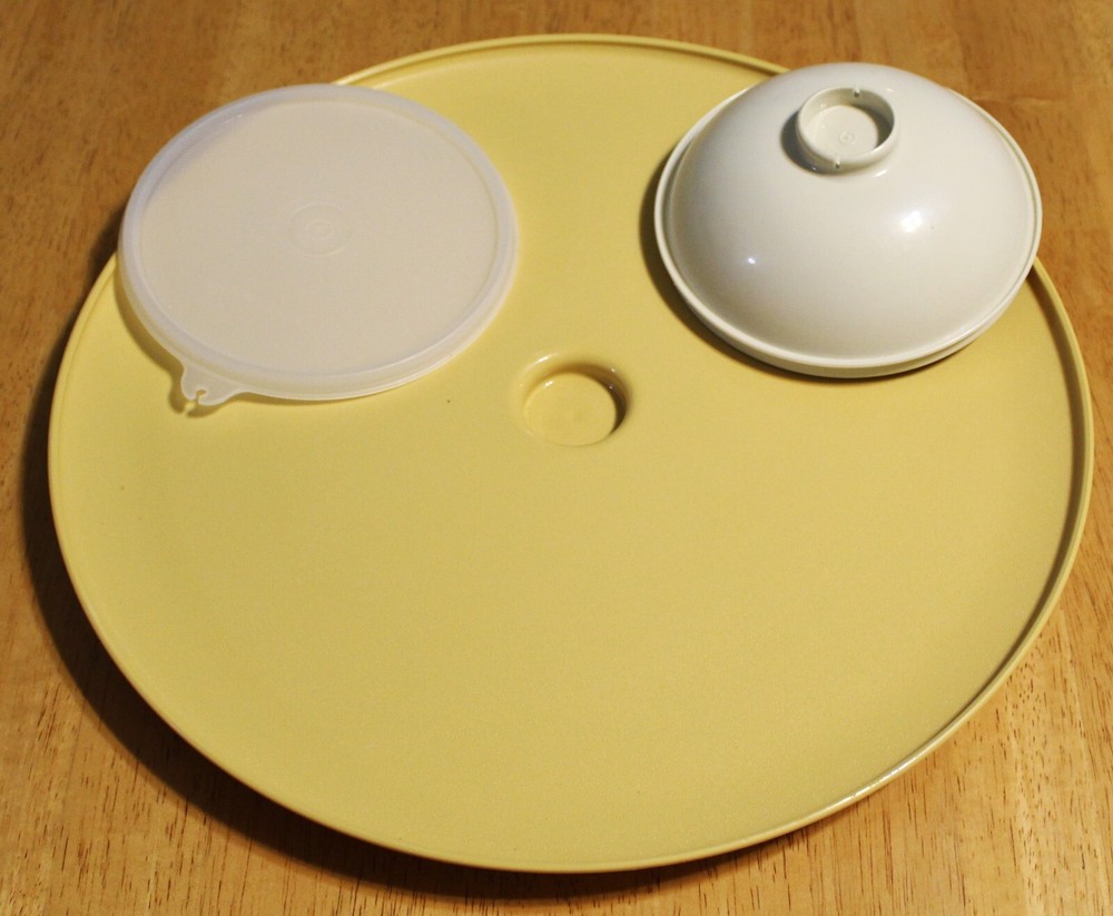 This is a vintage pre-owned used condition TUPPERWARE - HARVEST GOLD W/ALMOND CENTER DIP 'N SERVE APPETIZER TRAY AND BOWL SET #491, 492-5 produced from the 1970's to early 80's. It is 14 inches wide; the bowl is 5.5 inches wide at the top and snaps into cavity of tray. ------------------------------------------------------------------------ I can combine with other items, but let me know first, since I will need to recheck calculated figures of shipping costs. The combined shipping costs must be made into a single invoice to get the lower combined rates, so don't pay before requesting a new invoice. In order to comply with the newer eBay rules on adding tracking information - items once paid for must have tracking entered by the shipping date deadlines (2 days). If you make payment before requesting an updated invoice with the correct postage, I will assume you do not have further purchases and will send out the item alone, neither can I correct it. I always use tracking with the items, so it is why the shipping price is a little higher as the only way is to send it is either Media, Ground Advantage, or Priority rates to ensure that they get there. Media items and non-media must be combined at the regular rates for the non-media rate, so may not be as cheap as sending separately. Payment is required within 3 days, unless arrangements have been made with seller, and should payment not be made; eBay has a program that cancels the order after 4 days. Check out my other items!