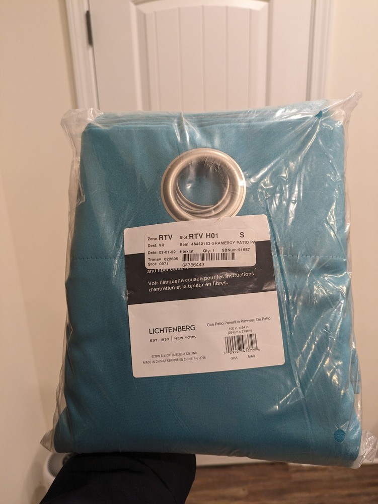Turquoise Lichtenburg Sun Zero Blackout Patio Curtain 100" x 84" One Panel. Condition is New. Shipped with USPS Ground Advantage....