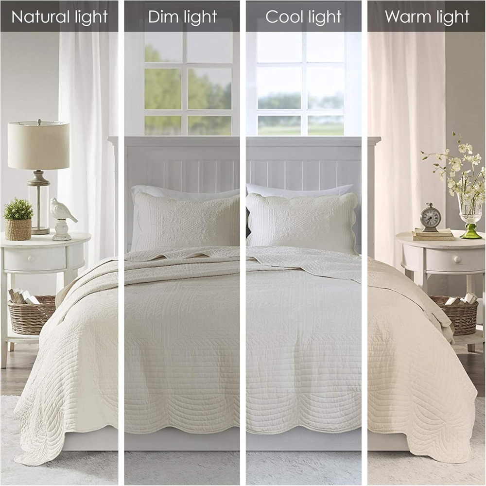 Menu Other Items Feedbacks About Us Contact Us Add To Favorites Tuscany Quilt Set-Casual Damask Medallion Stitching Design , Lightweight Coverlet Bedspread Bedding, Shams, King/Cal King(104"X94"), Medallion Cream 3 Piece 100% Polyester Imported The Madison Park Tuscany 3 Piece Reversible Scalloped Edge Coverlet Set is perfect as a layering piece or as an alternative to your comforter for a charming country look. The coverlet and shams flaunt a classic stitch pattern with scalloped edges that add an elegant touch to your bedroom. Set includes: 1 Coverlet: 108"W x 96"L, 2 King Shams: 20"W x 36"L Care instructions: Machine wash cold, gentle cycle, and separately. Do not bleach. Tumble dry low, remove promptly. Do not iron. If there is no free movement in the washer or dryer, use large capacity commercial washer/dryer. The Madison Park Tuscany 3 Piece Reversible Scalloped Edge Coverlet Set is perfect as a layering piece or as an alternative to your comforter for a charming country look. The coverlet and shams flaunt a classic stitch pattern with scalloped edges that add an elegant touch to your bedroom. This reversible coverlet is filled with cotton filling and features a soft microfiber face, giving your bed a cozy cottage look. Item Specification Age Range Description Kid Item Dimensions 108 x 96 x 1.5 inches Pattern Geometric Material Type Polyester Theme Medallion,Damask,Country Unit Count 3.0 Count Pillowcase Quantity 2 Material Polyester Item Display Dimensions 15.7 x 13 x 9.1 inches Seasons All Item Weight 7.1 Pounds Occasion everyday/casual Sham Quantity 2 Color Medallion Cream Global Trade Identification Number 00675716546793 Product Care Instructions Machine Wash Included Components 1 Coverlet, 2 King Shams Style Name Coverlet Set Size King/Cal King(104"x94") Dimensions Shipping Returns Additional Info Product Dimensions: 96.0 inches x 108.0 inches x 1.5 inches. Weight: 7.1 lb Fast shipping is very important for us. Our standard shipping service is FREE. Your order will be shipped within 1-3 business days upon full payment received. Most items are delivered within 3-5 business days, however, please allow 3-10 business days. We are shipping only to USA. We only ship to the confirmed Paypal address. We reserve the right to cancel any order for any reason at any time. We are not responsible for undeliverable addresses. We offer a 30 day return policy from checkout winning date. Your satisfaction is guaranteed! If for any reason you are unhappy with your item, just return it within 30 days for a full refund, minus shipping cost. Please contact us prior to initiating a return so that we can issue you a refund authorization. Items defective upon receipt must be packaged in their retail packaging as if new and returned with a detailed description of the problem. Return shipping fees are not refundable. We reserve the right to decline any returns if the above guidelines are not followed. All of our items, unless otherwise stated, will only run on 120 volts. Please check to make sure your country complies with these specifications. If you have a problem or question regarding your transaction please contact us before leaving any type of feedback. We will work with you to resolve any problem you may have.