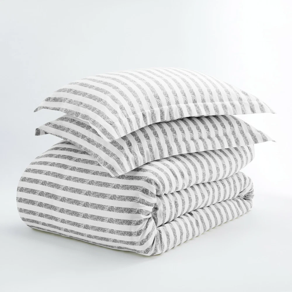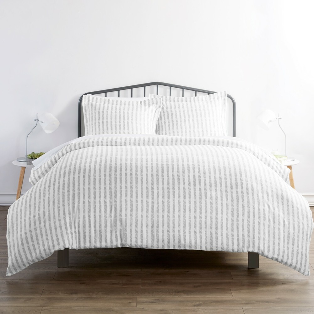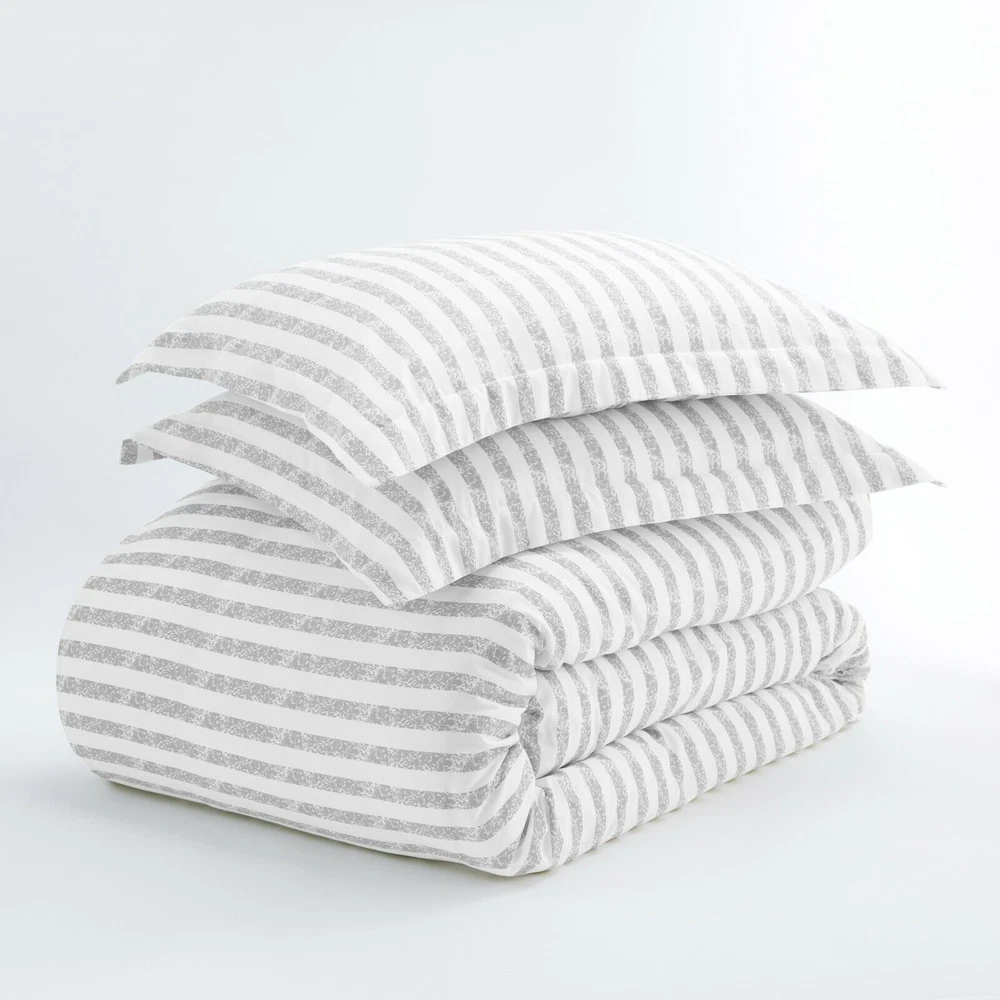 Linen Market Home Collection 2pc Duvet Cover Set Twin Rugged Stripes Light Gray