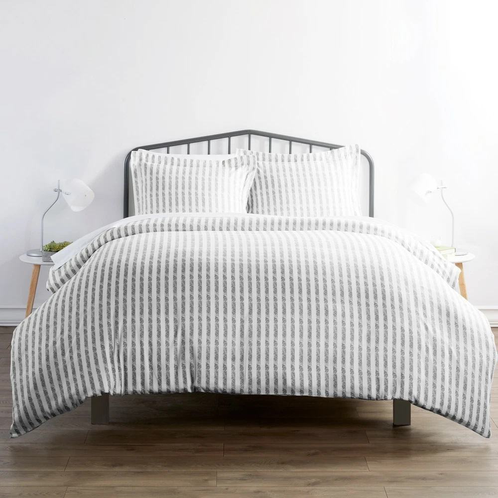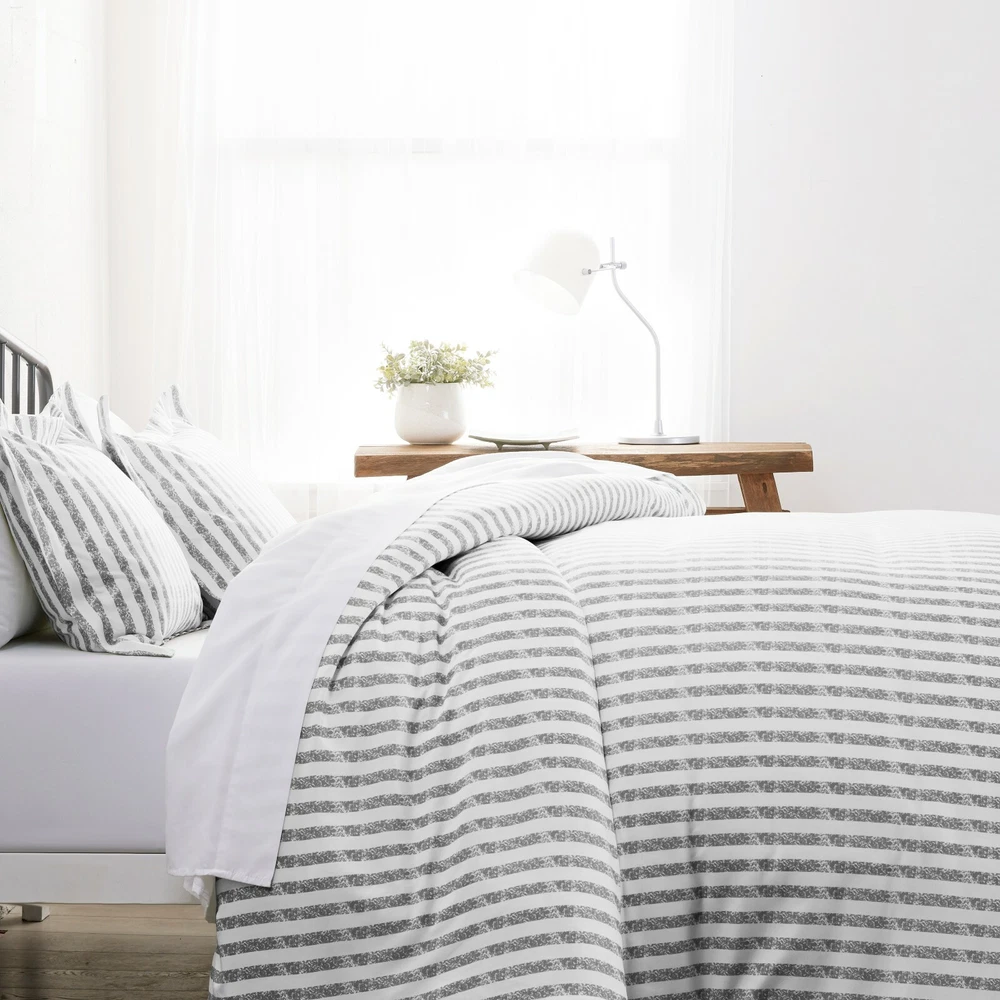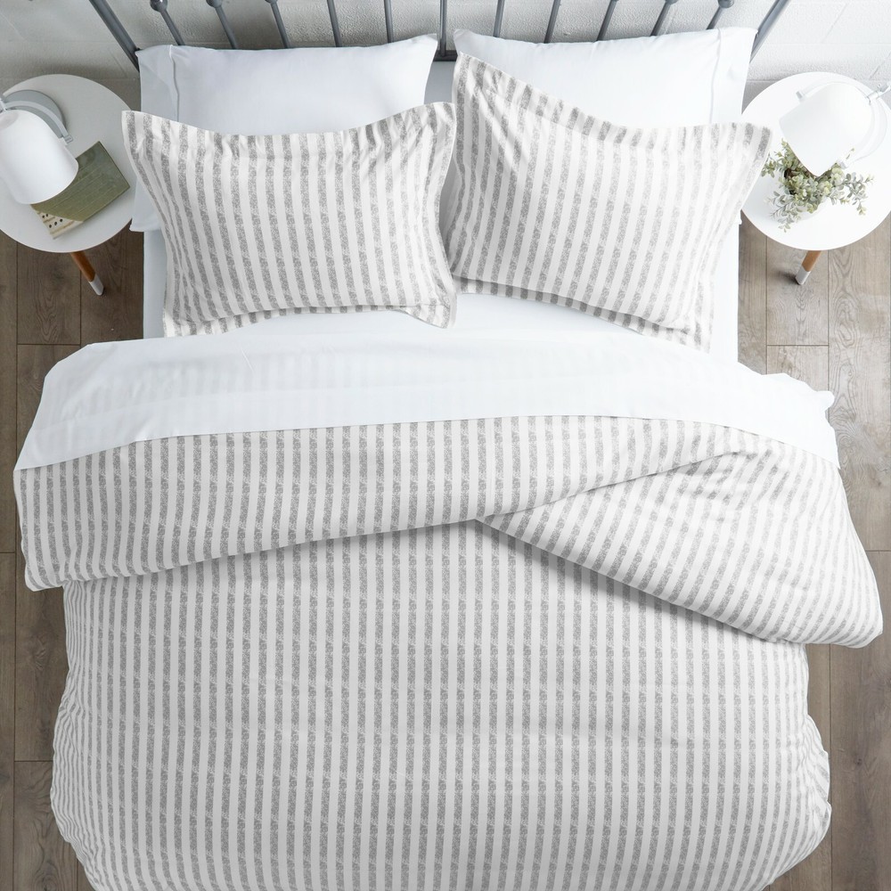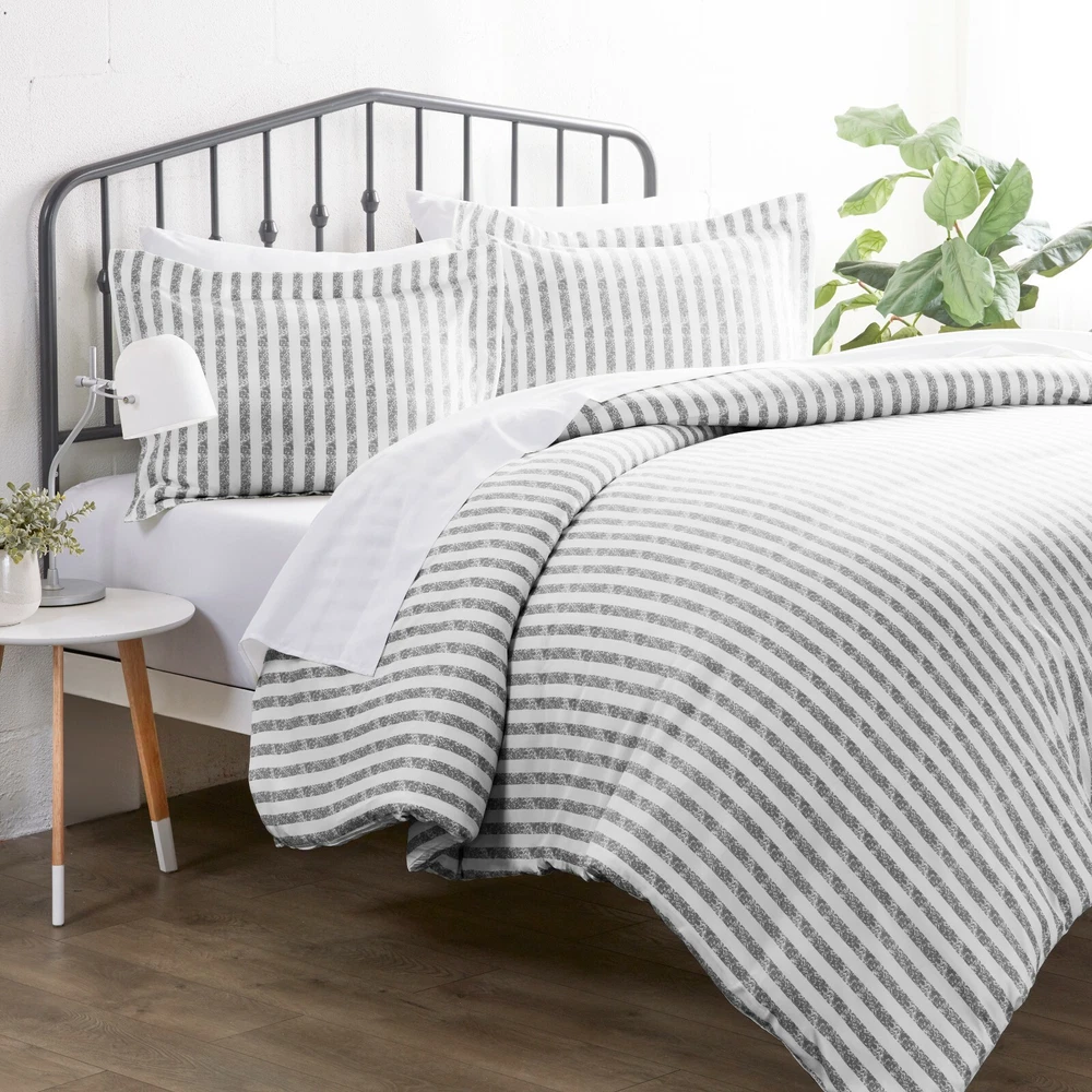Linen Market Home Collection 2pc Duvet Cover Set Twin Rugged Stripes Light Gray