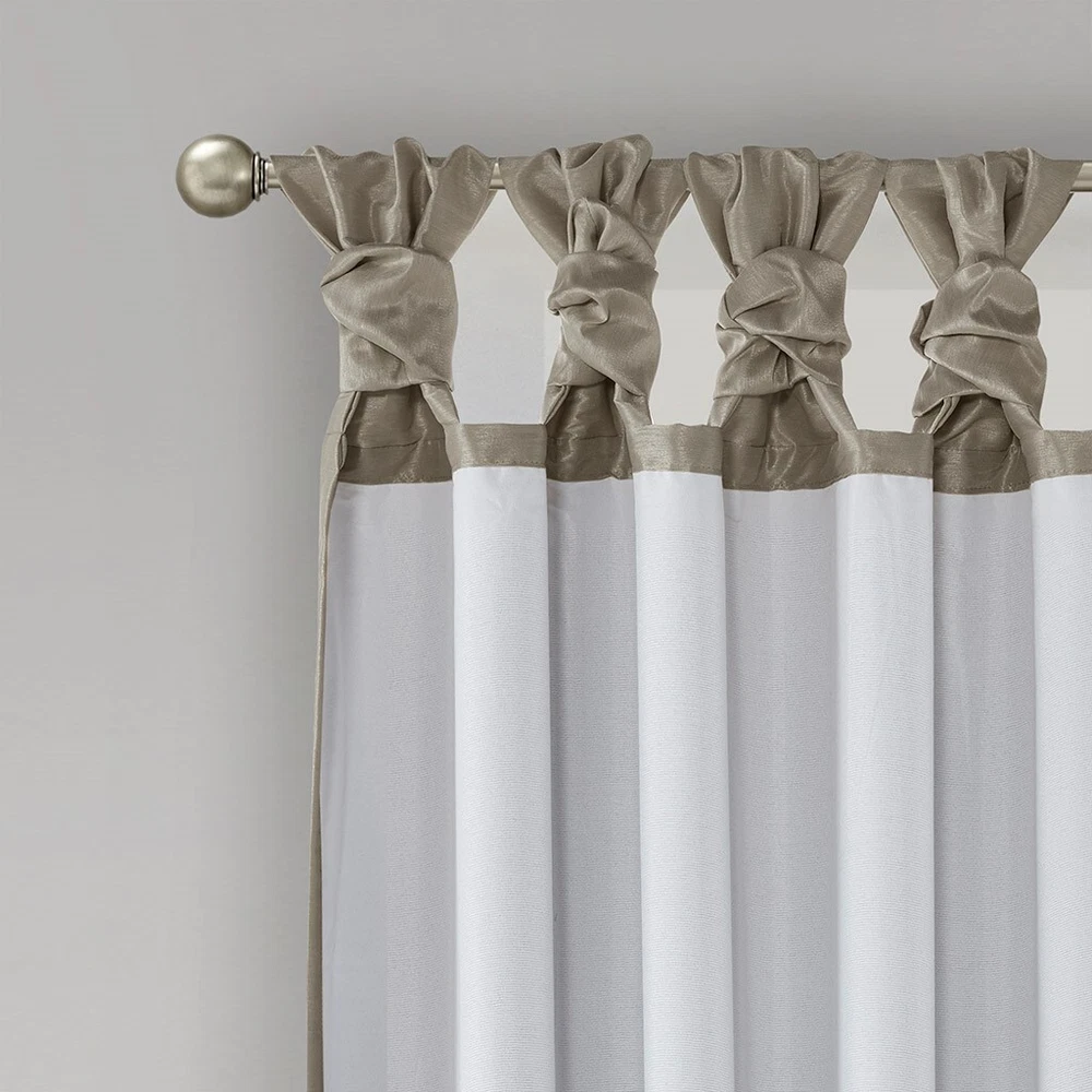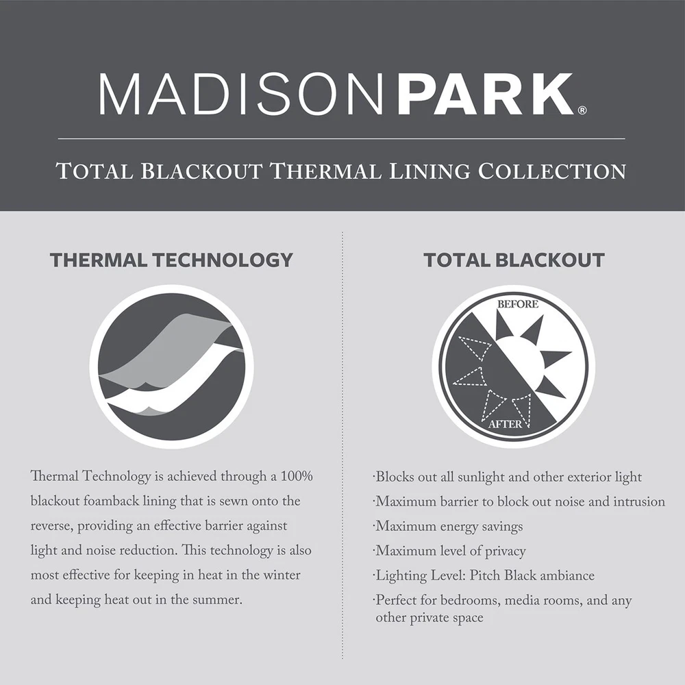 Product Information Product Type: General Item Product Name: Twist Tab Total Blackout Window Curtain Panel Pewter 50x84" Blackout Place of Origin: China Main Color: Pewter Main Material: Polyester Product Dimensions Assembled Length (in.): 84.00 Assembled Width (in.): 50.00 Assembled Height (in.): 0.13 Weight (lbs.): 2.18 Package Size Length (in.): 9.84 Width (in.): 11.81 Height (in.): 3.94 Weight (lbs.): 2.51 Product Features DIY twisted tab top finish window curtain panel Faux silk sheen base face fabric Oeko-Tex Certified, includes no harmful substances or chemicals (# BJ025 173578) Added heavyweight foamback lining for 100% Total Blackout abilities 100% total blackout provides maximum barrier to block out all exterior light and noise intrusion Energy efficient with thermal technology for maximum energy savings and high level of privacy Due to the TBO liner, panel color will vary slightly between top finish and panel due to thermal liner Need to purchase 2 panels for each window, available in 84 or 95 inches length Description Description Energy efficiency meets a sophisticate style with the Madison Park Emilia Twist Tab Total Blackout Window Curtain. This pewter window curtain panel showcases a DIY twist tab top finish that allows you to create an elegant display in your living room or bedroom space. The faux silk sheen base fabric features a 3 pass foamback liner on the reverse to block out all outside light, noise, and intrusion ensuring the highest level of privacy. Using thermal technology, the total blackout curtain helps provide maximum energy savings by keeping your room the perfect temperature through the seasons. While this window panel is also OEKO-TEX certified, meaning it does not contain any harmful substances or chemicals, ensuring quality comfort and wellness. This twist tab total blackout window panel is perfect for use in bedrooms, media rooms, or any private space. As shown in the image, two curtain panels need to be purchased for each window; Fits up to a 2" diameter rod. Product Details 50x84" Blackout 1 Window Curtain:50"W x 84"L Material 100% Polyester