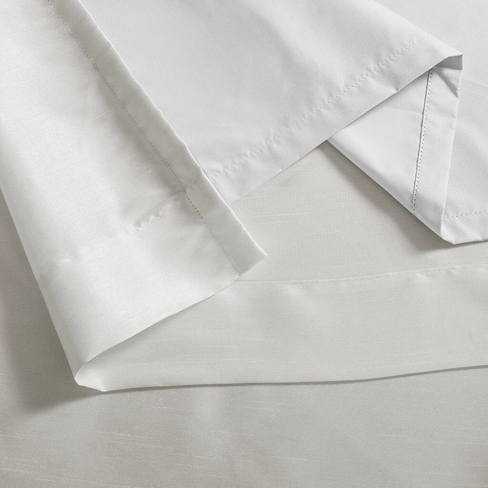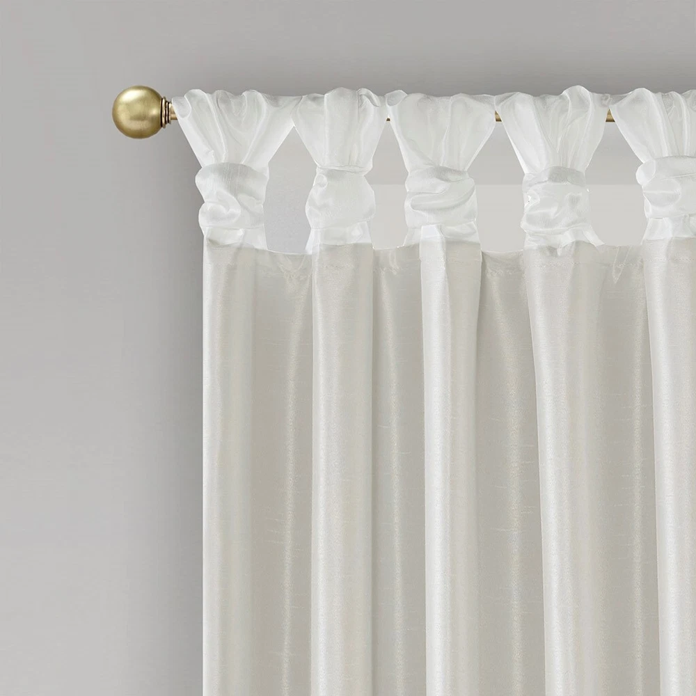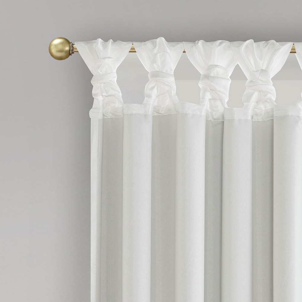 Product Information Product Type: General Item Product Name: Twist Tab Total Blackout Window Curtain Panel White 50x95" Blackout Place of Origin: China Main Color: White Main Material: Polyester Product Dimensions Assembled Length (in.): 95.00 Assembled Width (in.): 50.00 Assembled Height (in.): 0.13 Weight (lbs.): 1.52 Package Size Length (in.): 3.00 Width (in.): 10.04 Height (in.): 8.66 Weight (lbs.): 1.66 Product Features DIY twisted tab top finish window curtain panel Faux silk sheen base face fabric Added heavyweight foamback lining for 100% Total Blackout abilities 100% total blackout provides maximum barrier to block out all exterior light and noise intrusion Energy efficient with thermal technology for maximum energy savings and high level of privacy Due to the TBO liner, panel color will vary between an off white to light grey Need to purchase 2 panels for each window, available in 84 or 95 inches length Machine washable for easy care Description Description Energy efficiency meets a sophisticate style with the Madison Park Emilia Twist Tab Total Blackout Window Curtain. This white window curtain panel showcases a DIY twist tab top finish that allows you to create an elegant display in your living room or bedroom space. The faux silk sheen base fabric features a 3 pass foamback liner on the reverse to block out all outside light, noise, and intrusion ensuring the highest level of privacy. Using thermal technology, the total blackout curtain helps provide maximum energy savings by keeping your room the perfect temperature through the seasons. This twist tab total blackout window panel is perfect for use in bedrooms, media rooms, or any private space. As shown in the image, two curtain panels need to be purchased for each window; Fits up to a 2” diameter rod. Product Details 50x95" Blackout 1 Window Curtain:50"W x 95"L Material 100% polyester