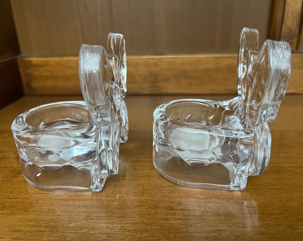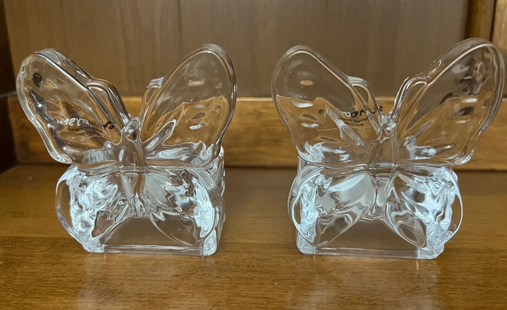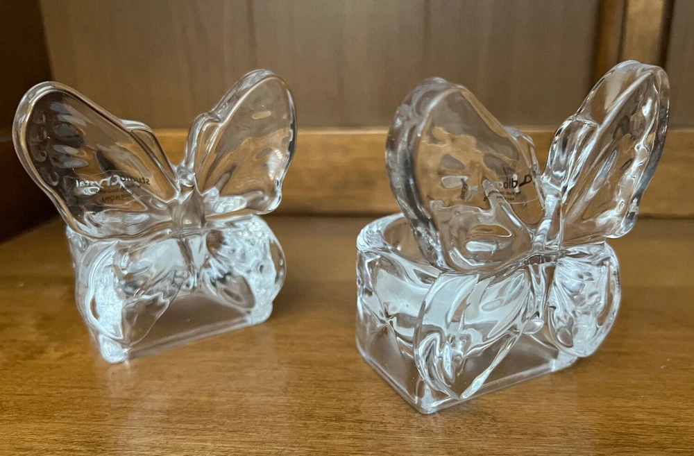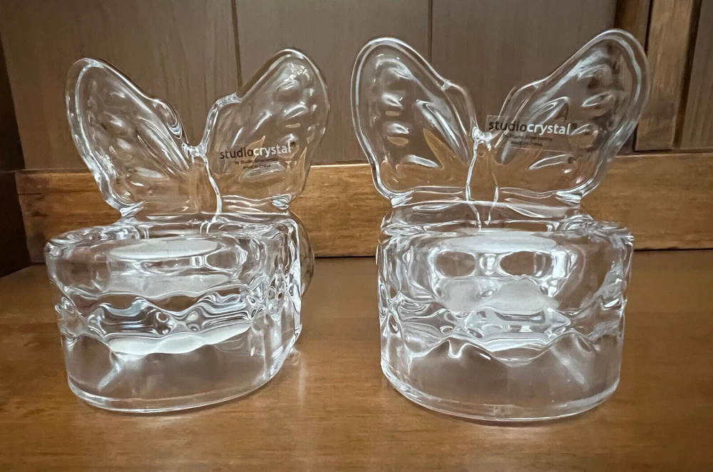 Selling Two Studio Crystal Butterfly Shaped Tea Light Candle Holders. Both in New Condition. No Box or Price Tag. 3 1/2" Tall and 3" Wide. From pet free and smoke free home.