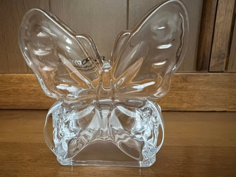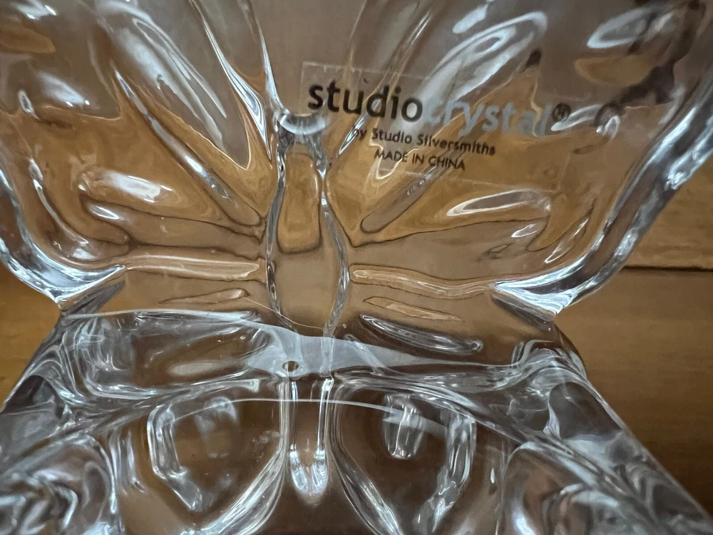 Selling Two Studio Crystal Butterfly Shaped Tea Light Candle Holders. Both in New Condition. No Box or Price Tag. 3 1/2" Tall and 3" Wide. From pet free and smoke free home....