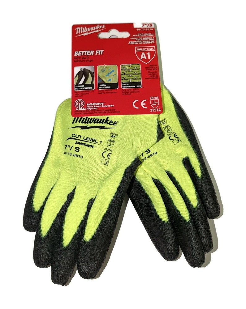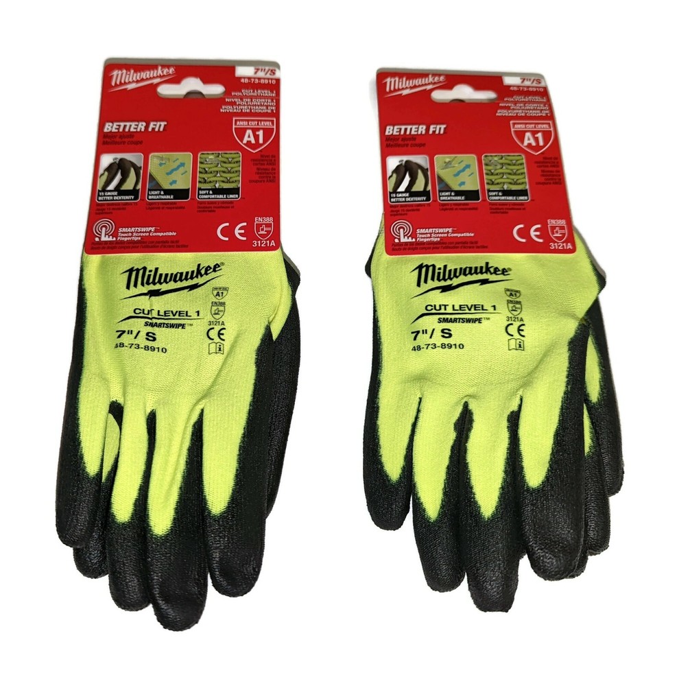 Description: Brand New Two Pairs of Milwaukee Hi-Vis Cut Level 1 A1 Dipped Work Gloves with Smartswipe touch screen smartphone compatible index finger. Includes 2 pairs. Features: 15 Gauge for Better Dexterity Light and Breathable Soft and Comfortable Material ANSI Cut Level 1 EN 388 - 3121A SMARTSWIPE™ Touchscreen Compatible Fingertips High dexterity design when handling small objects Breathable glove design High Performance Polyethylene is knit into the gloves for cut protection Brand: Milwaukee About Us: Contractor Service is a New Jersey based company that has been providing construction & industrial products as well as equipment to customers since 1986. We sell, service, and provide parts for most popular brand name products. Safety equipment, tools, machines and materials; you name it we've done it. EBox27MW