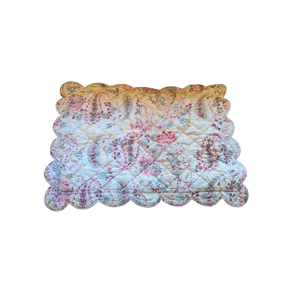 Up for sale set of two standard pillow cases by Pottery Barn: Elizabeth pattern. Quilted. Scalloped edges. Clean with no structural issues.