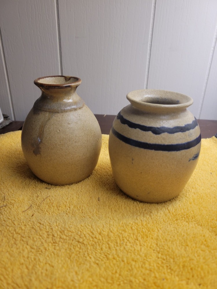 This unique brown and gold ball vase is a beautiful addition to any home decor. Made of high-quality pottery and handcrafted with care, this vase is a one-of-a-kind piece that will add charm and elegance to your living space. With a mid-century modern style and a Japanese theme, this ball vase is perfect for those who appreciate vintage art and modern design. The vase is also signed by the artist, adding value and authenticity to the piece. Its small size makes it versatile and easy to display in any room, while its earthy tones make it a great complement to any color scheme. Add this original, art pottery ball vase to your collection today!