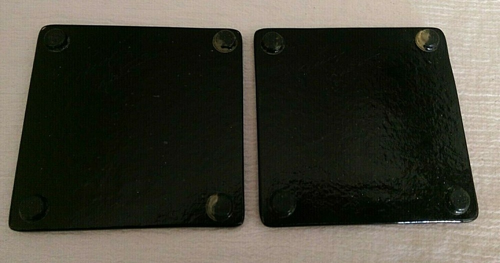 Two very nice coasters in black with multi - colored inlays. Signed by the artist....