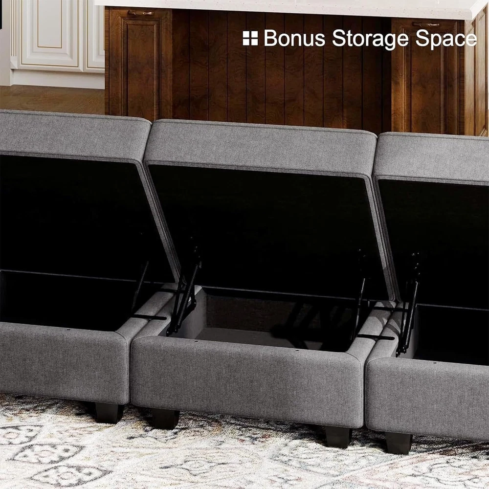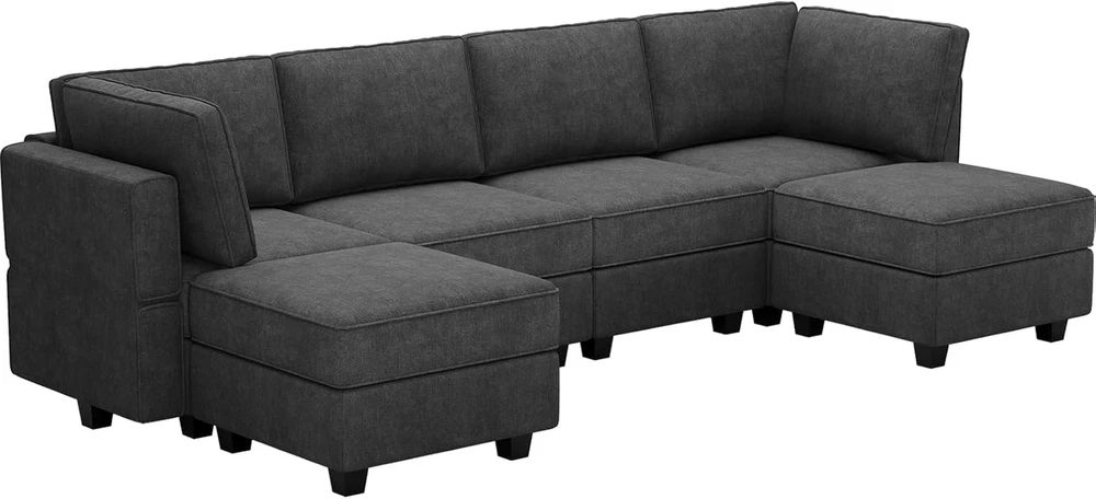 This U-shaped modular couch is a game-changer for any living space! The dark grey terry fabric is soft yet durable, and the reversible storage ottoman adds smart functionality. Fits six comfortably with generous seating depth, and the engineered wood frame feels sturdy. Perfect for lounging, entertaining, or even extra storage—love how it maximizes space without sacrificing style!