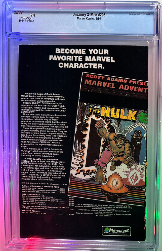 UNCANNY X-MEN #205 (Marvel Comics May 1986) White pages CGC 9.8 Always bagged and stored properly Can combine shipping Other great books up and more listed often...