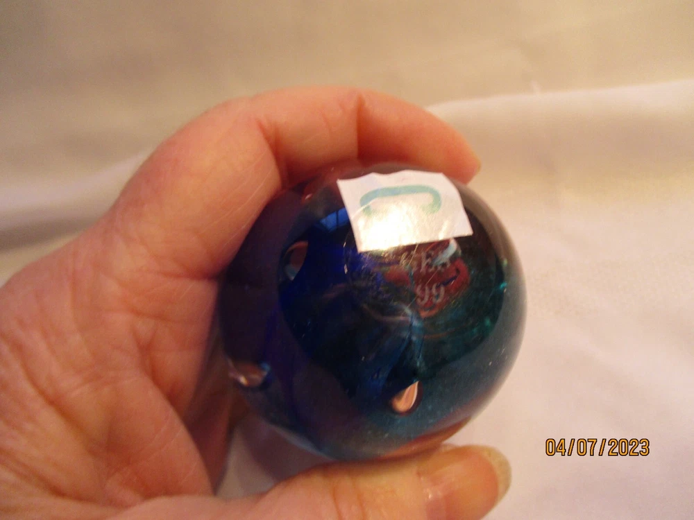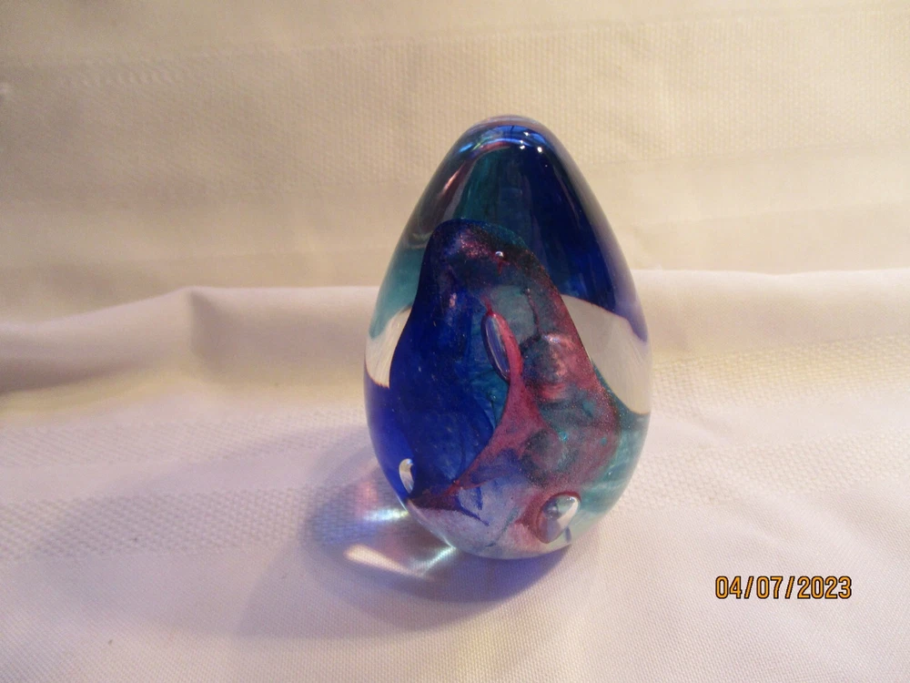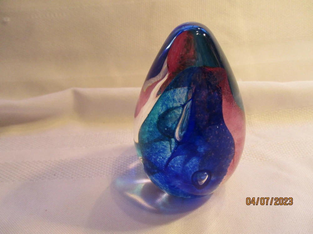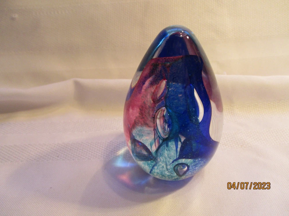 Beautiful glass paperweight. Signed GES 99. An art glass paperweight made in Seattle, WA. It is 3 1/4” high. Make sure you look carefully at the pictures as they are an important piece of the description of the item. I will always combine shipping, so if you plan to purchase more than one item, please let me know both before and when you are finished so I can send you an invoice with combined shipping. Please pay within 4 days of your purchase unless other arrangements have been made. I work very hard to retain my high ranking on eBay, so if you have an issue of any sort with your purchase, please contact me directly so we can resolve the issue. Thanks!