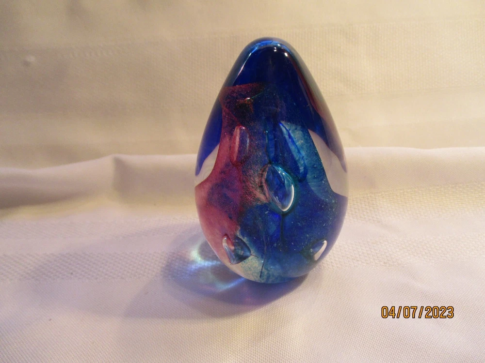 UNIQUE GLASS EYE STUDIO EGG SHAPED PAPERWEIGHT~CONTROLLED BUBBLE~DICHROIC