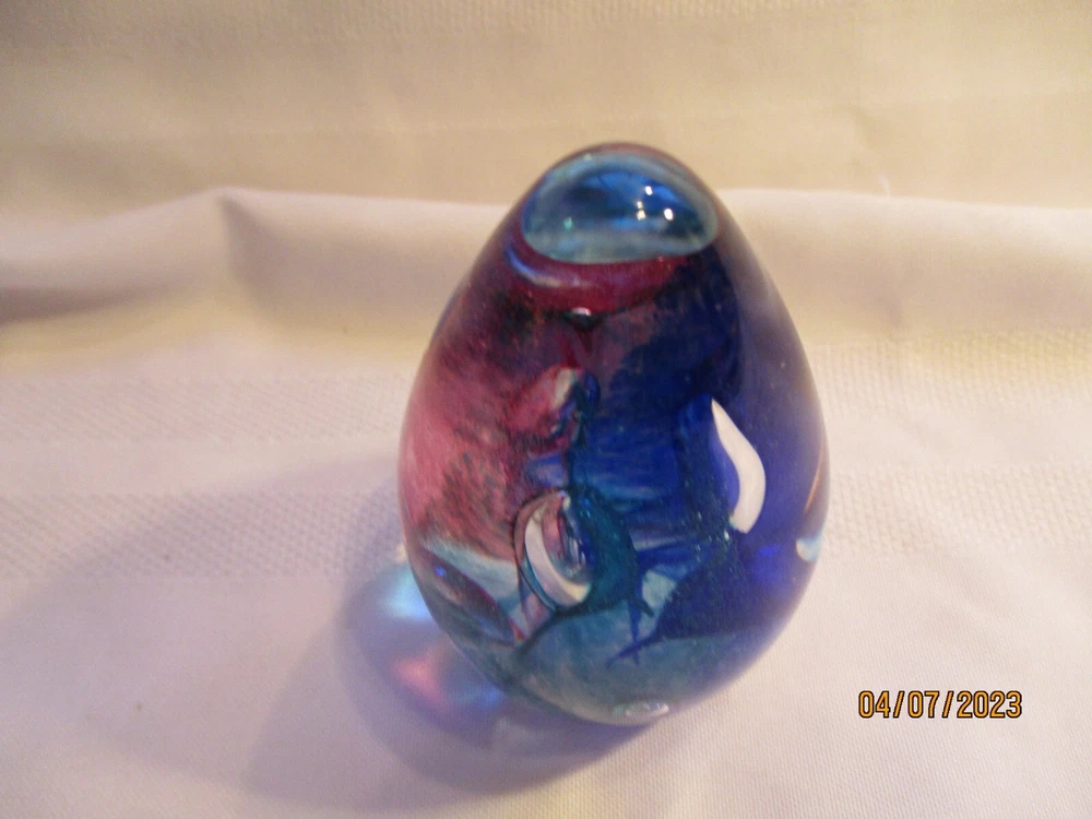 Beautiful glass paperweight. Signed GES 99. An art glass paperweight made in Seattle, WA. It is 3 1/4” high. Make sure you look carefully at the pictures as they are an important piece of the descript...