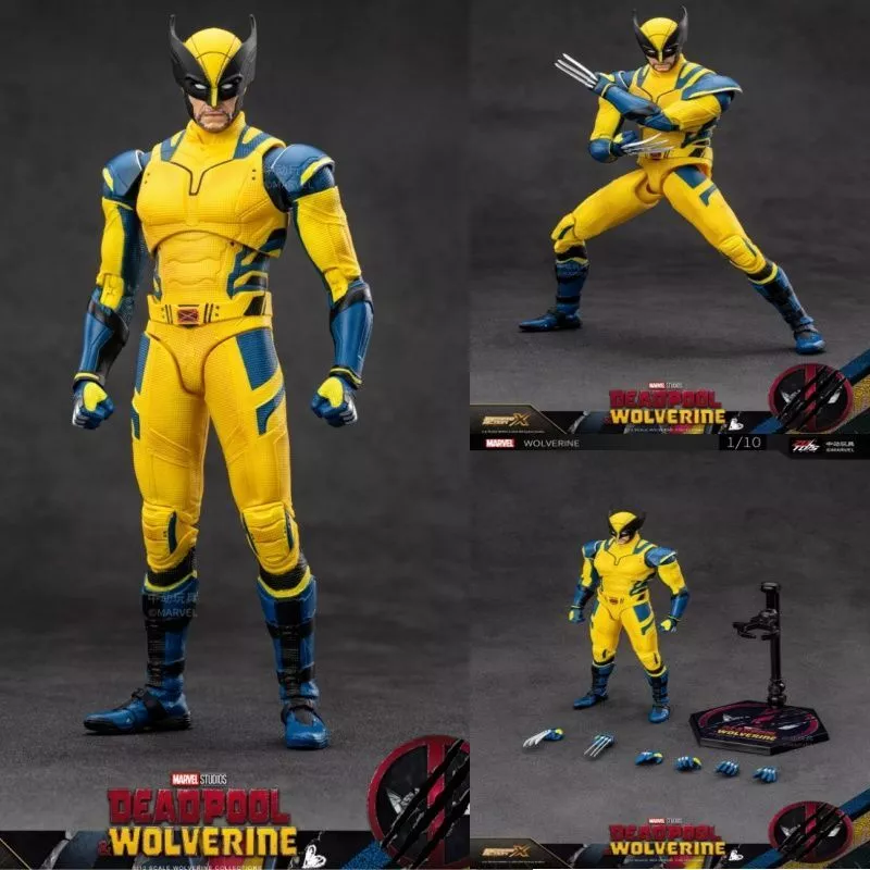 New ZD Toys Deadpool & Wolverine Model 7in 1/10 Action Figures Wolverine Model Marvel Superheroes Collection Ornaments Boy Gifts Wolverine, like Deadpool, is an anti-hero with a grumpy personality and likes to keep to himself. Wolverine is a mutant who has the ability to delay aging and heal himself, and can extend bone claws from his hands. Later, in an experiment, the bones were injected with Adamantium alloy, which gave them the ability to regenerate, and the bone claws were replaced by indestructible steel claws. In the movie "Deadpool and Wolverine", Wolverine puts on the classic yellow and blue tight-fitting suit from the comics, as well as Wolverine's iconic mask. The appearance restores the yellow and blue color scheme of this classic suit and has been aged. In the middle of the belt is the red and black "X" logo that represents Wolverine's mutant identity. The whole body is equipped with multiple movable joints, including limb joints, elbows, knees, toes, etc. This Wolverine comes with four pairs of replacement hands, including a pair of fisting hands, a pair of stance hands, a pair of relaxed hands, and Wolverine's signature wolf claws.