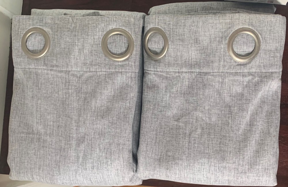 LIGHTLY USED, BOTTOM PORTION IS A BIT DIRTY - SEE PIC Features: Fleece Insulation Noise Reduction Total Blackout Fit Curtain Rods Up to 1.5" in Diameter Includes Two Curtain Panels 84 in. panel: 52 in. Width x 84 in. Height