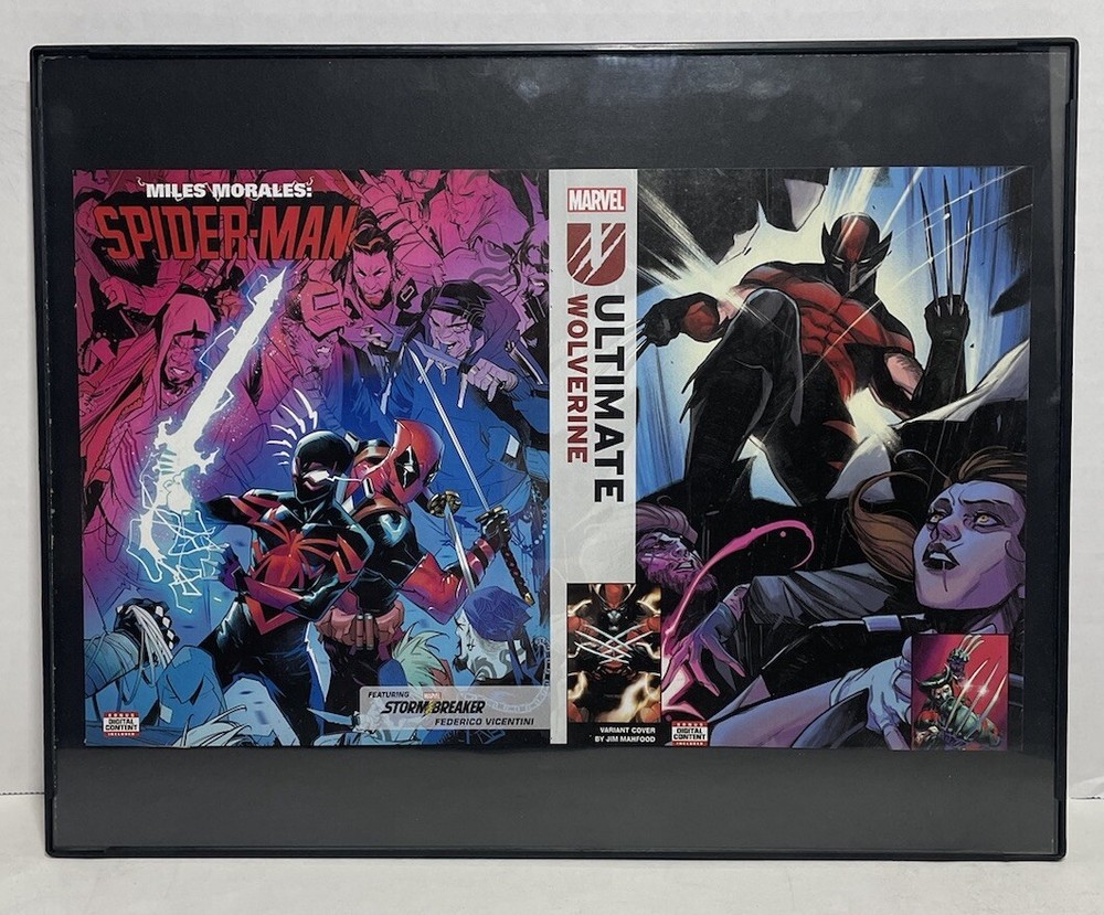 This hang-able Vintage Nintendo Ad is the perfect gift for Gamers, Streamers, Comic Enthusiast, and Collectors alike. Looks amazing in game rooms, streamer nooks, pod cast booths and personal office set-ups. Gives off nostalgic decor vibes for bedrooms and get away homes. Looks great almost anywhere! Left side: features cover art from Miles Morales: Spider-Man #31. Right side: features cover art from Ultimate Wolverine #3.