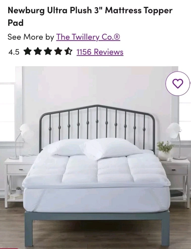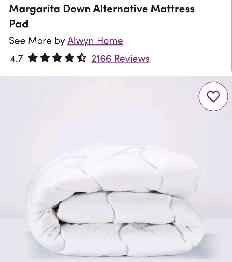 Lot of 2 items for Twin XL size mattress. Qty 1 Newburgh Ultra Plush 3in Mattress Topper Qty 1 Margarita Down Alternative Mattress Pad Pictures from Wayfair are the actual product. Both items are in EUC, only used for a couple weeks and ended up no longer needing. Great mattress topper and mattress pad combination, makes a thin twin mattress much nicer to sleep on. Great for dorm beds! Mattress pad fits depth of 21 in, fits perfectly over the mattress topper to protect it from stains and moisture. Both items have been washed and will ship vacumn sealed Will ship item out quickly either same day or next day. Thank you for looking!