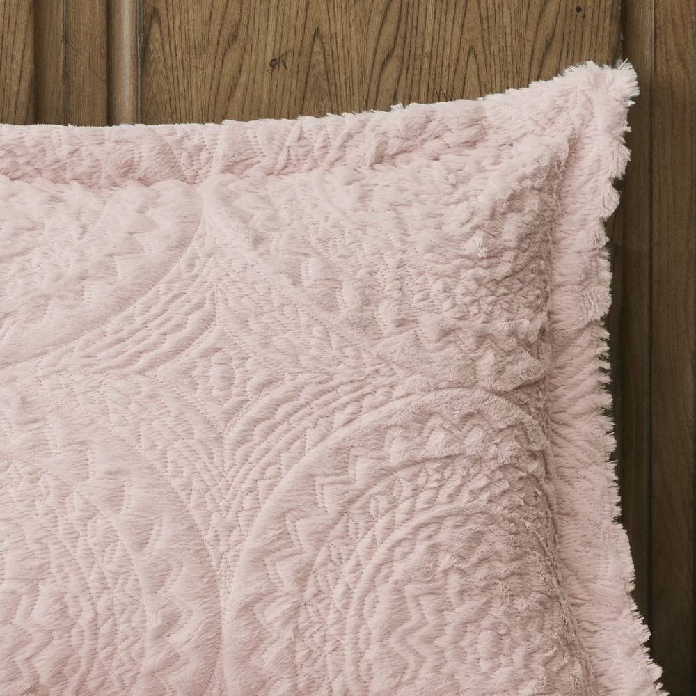 Transform your bedroom with the elegant style of ’s Arya Medallion Ultra Plush Comforter Mini Set. The soft blush comforter and matching sham feature an embroidered medallion design on the ultra-soft plush fabric. Machine washable for easy care, this comforter set makes a stunning addition to your home. Ultra soft and cozy Plush Faux Fur fabric, looks luxury and keeps you snuggly warm Full Medallion pattern , modern and grand looking , great for the guess room With coordinating shams , shams with 2" flange, 3" overlap at back Machine wash cold, gentle cycle and separately. Do not bleach, tumble dry low. Remove promptly. Do not iron