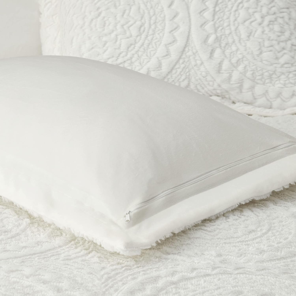 Plush All over medallion embroidered plush comforter set that will keep you warm throughout cold weather Set includes comforter and matching shams (1 sham in Twin) Fabric and filling are both polyester and hypoallergenic Comforter: 100%polyester Embroidered Long fur on face 100%polyester Solid Mink on Back Poly Fiber Filling Sham: 100%polyester Embroidered Long fur on face 100%polyester Solid Mink on Back 1 Comforter:104" x 90" 2 King Shams:20" x 36" + 2" (2) Machine Wash Transform your bedroom with the elegant style of Madison Park’s Arya Medallion Ultra Plush Comforter Mini Set. The rich ivory comforter and matching sham feature an embroidered medallion design on the ultra-soft plush fabric. Machine washable for easy care, this comforter set makes a stunning addition to your home.