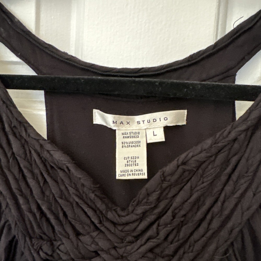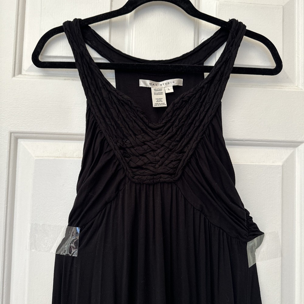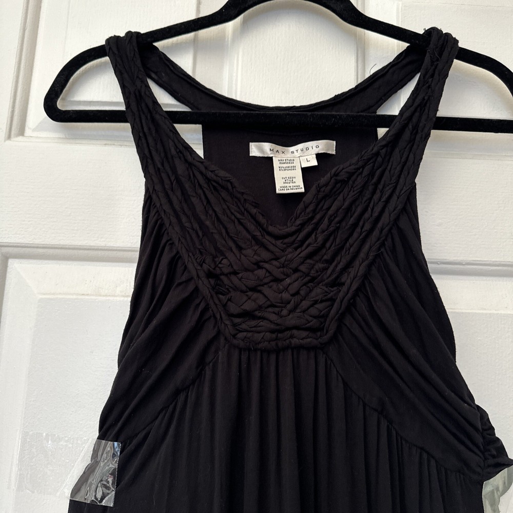 Unique Black Max Studio Tank Dress Size Large Quilted Ruched Hi-Low...