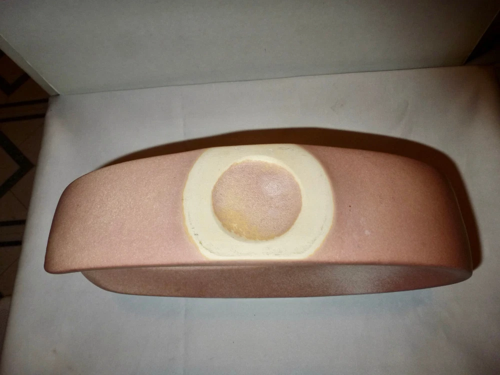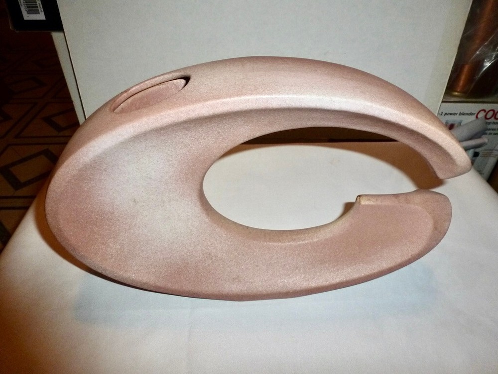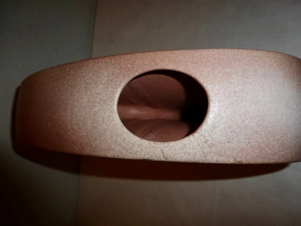 This is a Vintage Modernist "C" Shaped Vase, Measures 7 3/4" H by 12 1/2" L by 2 7/8" at its Widest Point. It is in good condition, but is does have a crack -- Please take a moment to review all of the photos, as they are an important part of the items description. Came from a smoke free home. This item has not been cleaned at all. It is being sold just as it was found. Please ask any questions prior to purchase. Please! If you're happy with your purchase, please remember that leaving feedback is super important to small sellers like myself. It's the best way for other shoppers to know how each transaction went, and it lets them know that I can be trusted to handle their items safely and efficiently. If there is a problem, please message me and I will do my best to correct the issue. I'd like everyone to be happy with their new treasures, and to shop with me again. Thank you. E 2 - wrapped