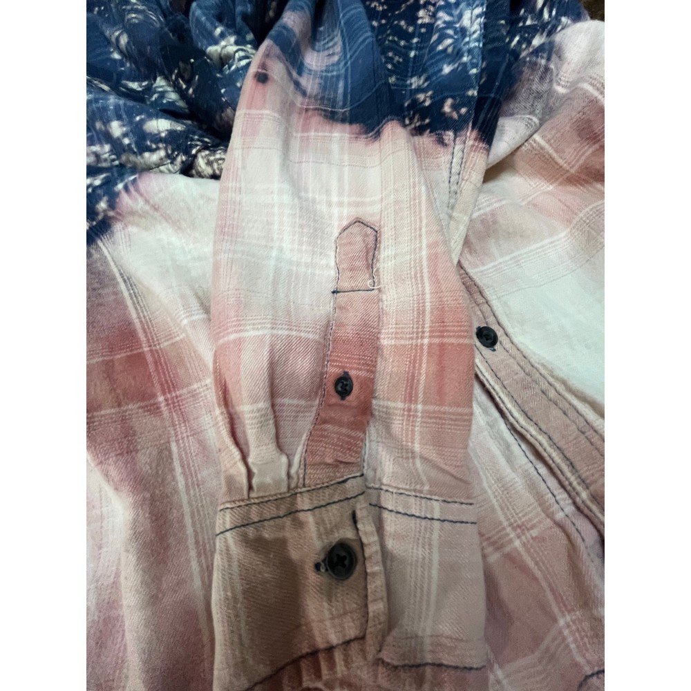 <![CDATA[<div>Size Large Button Down Plaid Bleach Dipped Top