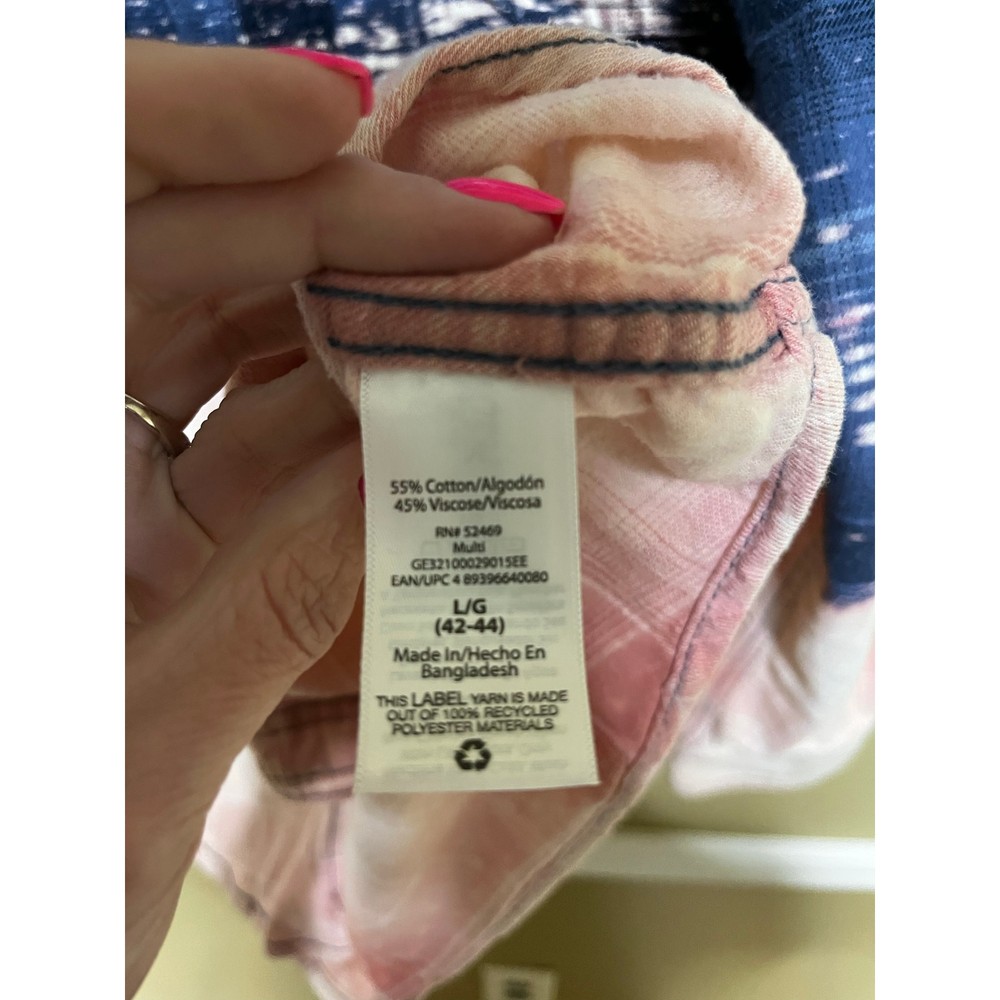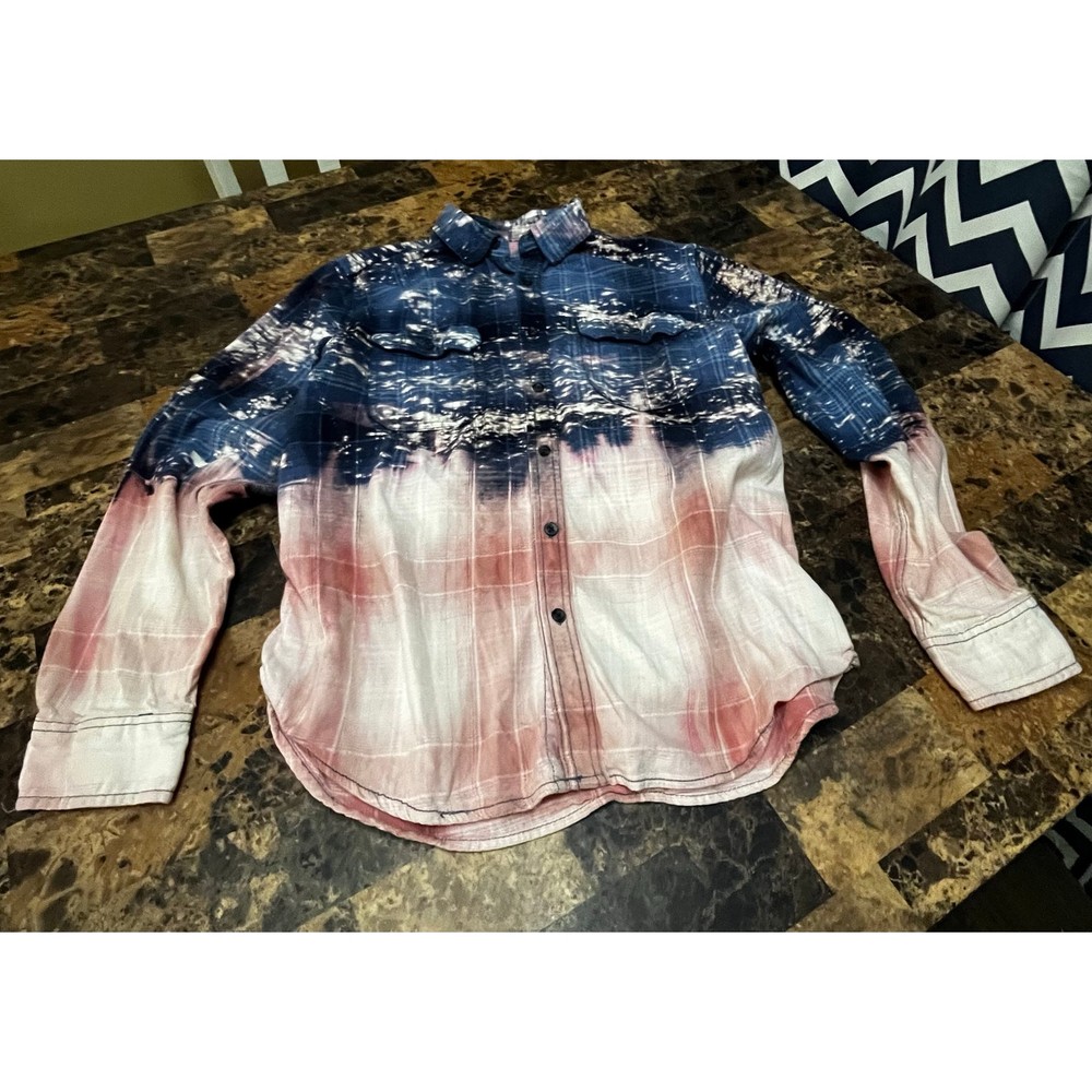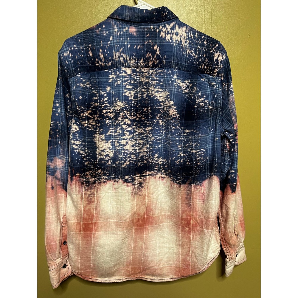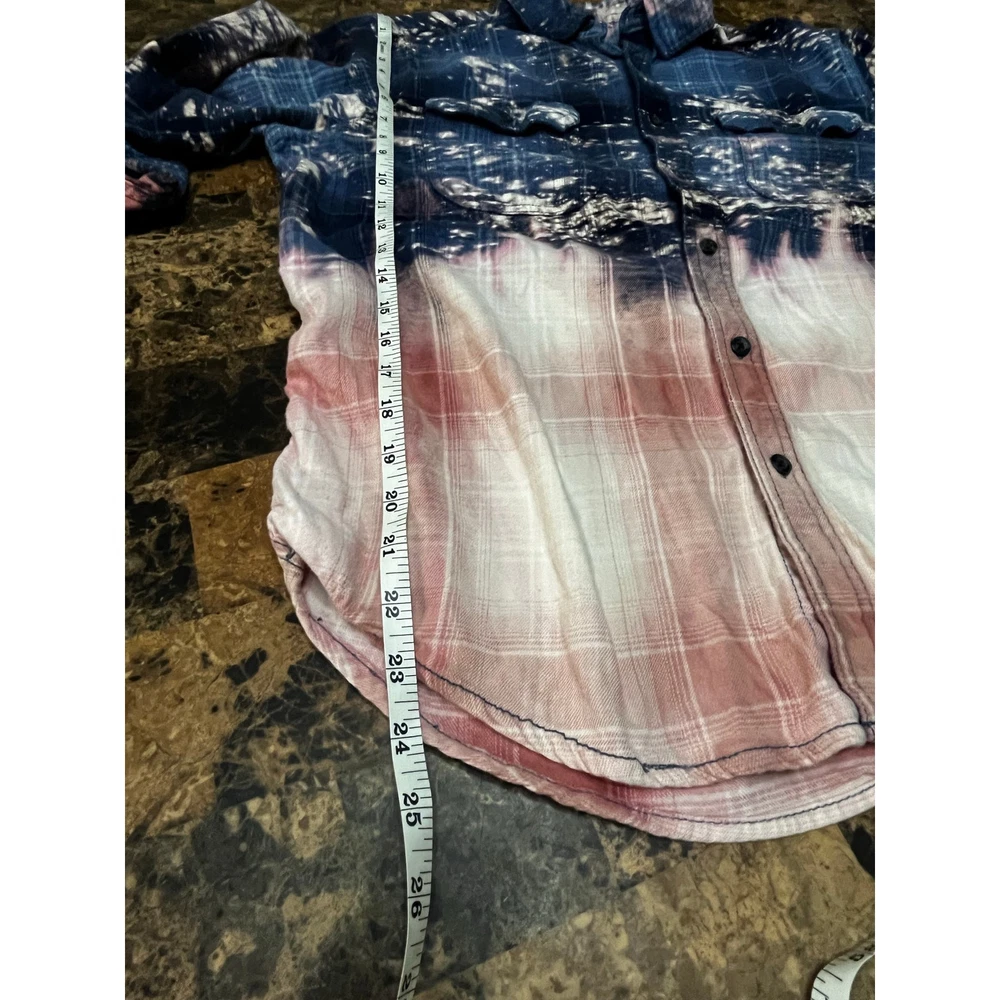 <![CDATA[<div>Size Large Button Down Plaid Bleach Dipped Top...