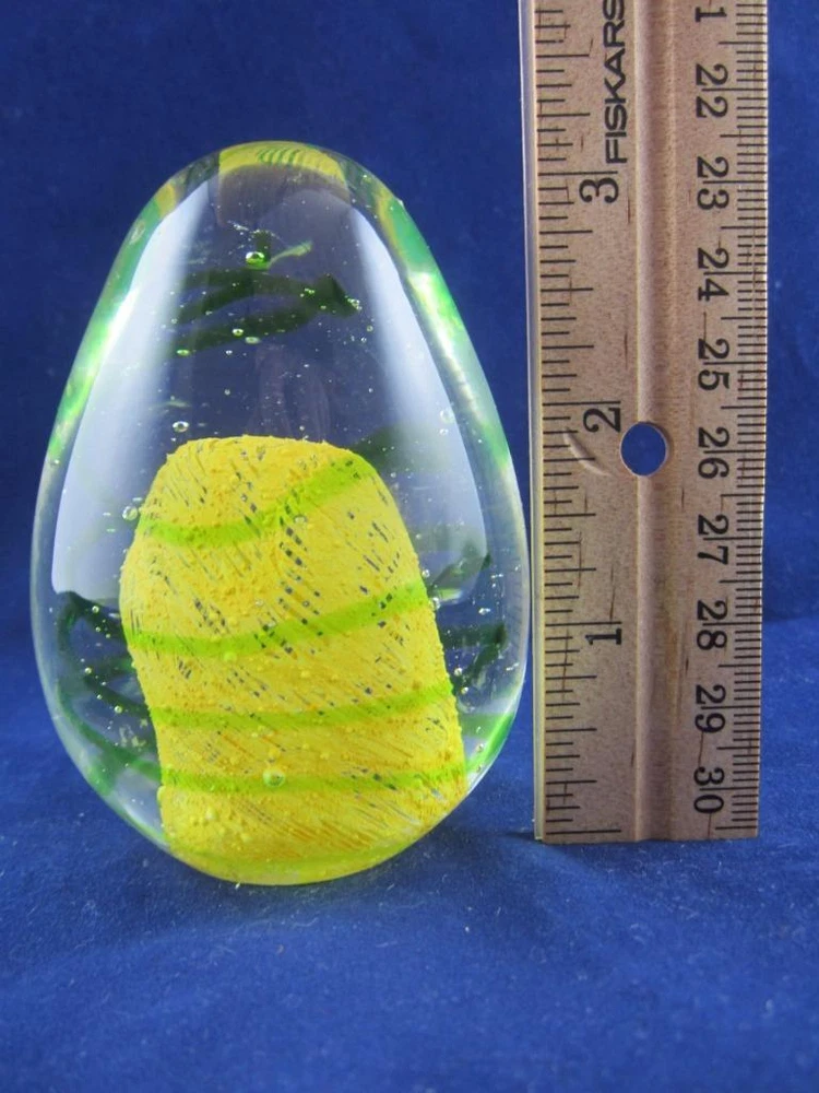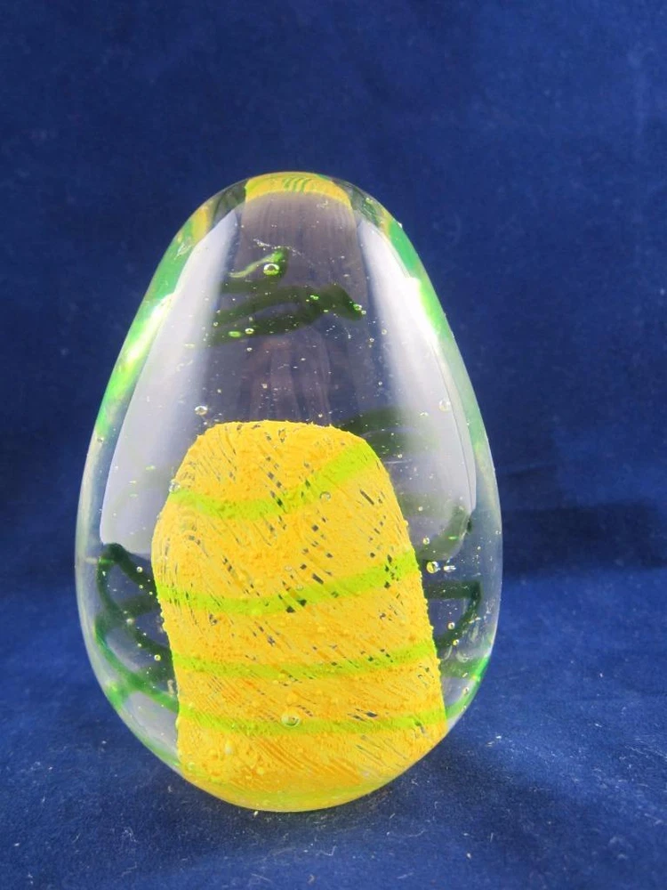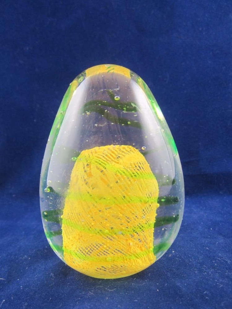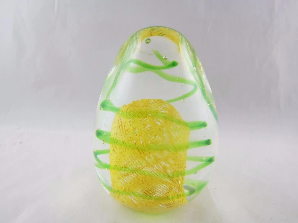 Up for your consideration is this neat Egg Shaped Paperweight. It has a beautiful bright Yellow with Green swirls throughout. It does not glow in the dark. It stands approximately 3 1/4" tall and is in excellent condition with no chips or cracks. Take a look at all the photos!!! Unique Yellow/Green Swirl Studio Art Glass Egg Paperweight Description Up for your consideration is this neat Egg Shaped Paperweight. It has a beautiful bright Yellow with Green swirls throughout. It does not glow in the dark. It stands approximately 3 1/4" tall and is in excellent condition with no chips or cracks. Take a look at all the photos!!! Feel free to send a note if you have questions. Check out the other fantastic collectibles we have in OUR STORE !! Thanks for looking! Payment Please ensure payment via PayPal within 3 days of your purchase or the end of the Auction. Shipping International Buyers Please Note: There are several options for shipping: First Class International, Priority International or Global Express. Keep in mind, if you decide to pay for First Class International, your item may take 1 to 6 weeks for delivery. There is no guaranteed delivery time for First Class International mail. Priority International has guaranteed shipping times. Please keep this in mind if you need your item sooner. Any orders that weigh over 4 lbs. or cost over $100 will be shipped Priority International only. Import duties, taxes and surcharges are not included in the item price or shipping charges. These charges are the buyer's responsibility. Please check with your country's customs office to determine what these additional costs may be prior to bidding/buying. These charges are normally collected by the delivering freight (shipping) company or when you pick the item up – do not confuse them for additional shipping charges. Pictures sell! Auctiva Free Image Hosting. Show off your items with Auctiva's Listing Templates Auctiva, THE simple solution for eBay sellers. Track Page Views With Auctiva's Counter