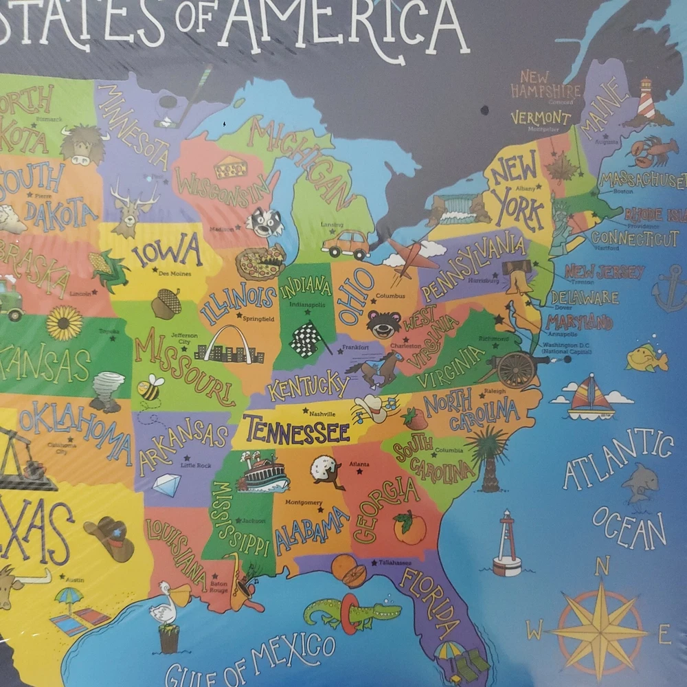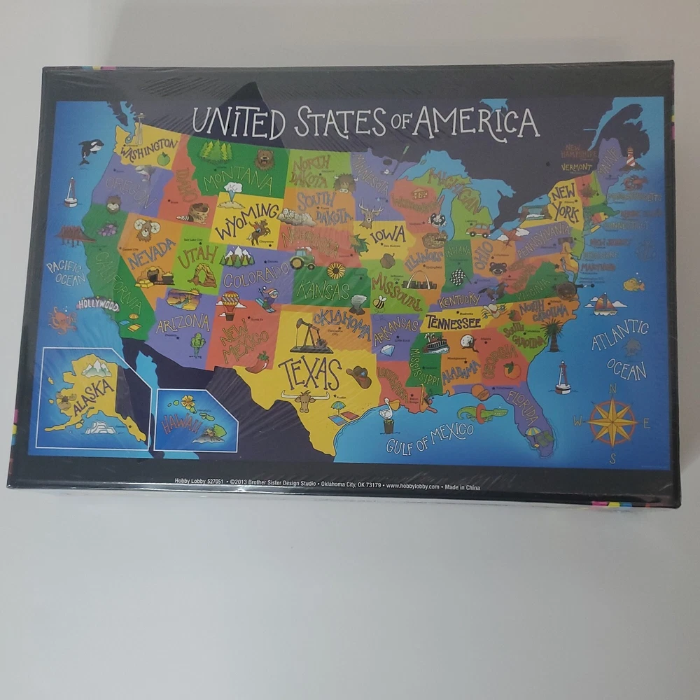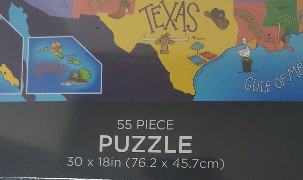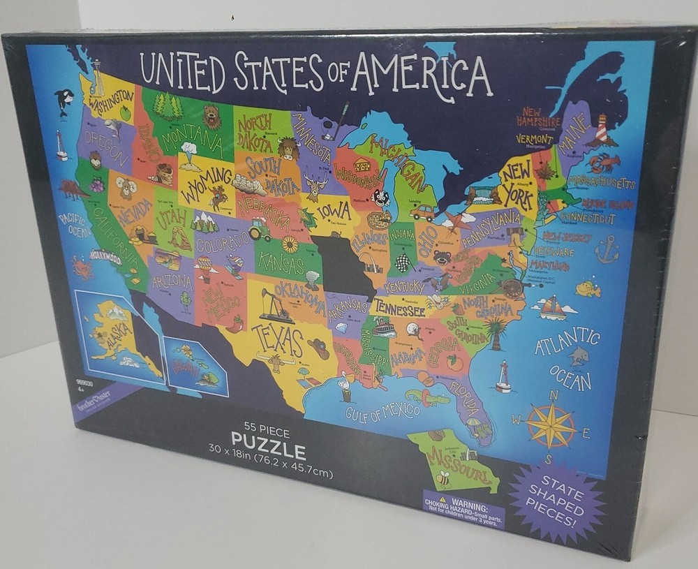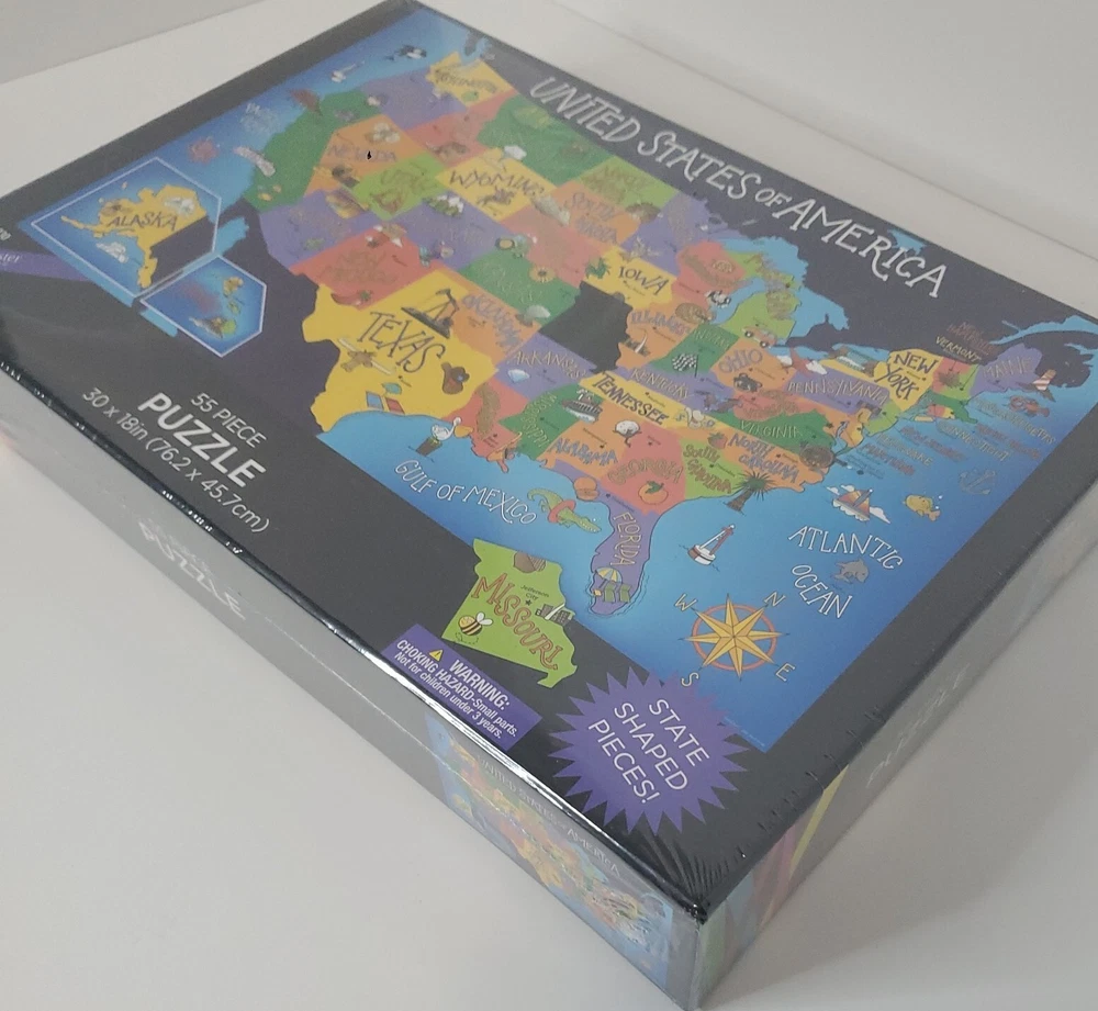 United States of America State Shaped 55 Piece Puzzle by Design Studio Multi Colored- Size 30x 18 in - State shaped pieces 55 total. Ages 4 plus recommended- Choking Hazzard - small parts not for children under 3 years. Perfect educational gift or family projected. Any puzzle Lover will enjoy. ~Please make sure to examine the photos carefully. I try to take very good pictures of all aspects and angles of the item to let you see the description and condition. Feel free to contact me regarding any questions. Thank you and have a great day. *Our Commitment/Shipping: ~My primary goal is to offer top quality products at an affordable price. Thank you for taking your time to view this product and support my small business. Please feel free to reach out anytime if you have any questions or concerns. ~Please make sure to examine the photos carefully. I try to take very good pictures of all aspects and angles of the item to let you see the description and condition. Feel free to contact me regarding any questions. Thanks ~Shipping: Most orders placed are processed same day or next business day depending on time of order placed or other unforeseen factors (i.e. extreme weather, holidays/ shipping closed). Most items ship with USPS and resident address or PO Box numbers are accepted. Note: UPS and FEDEX will not ship to PO Boxes. UPS/FEDEX only rarely used for very large or heavy items. Thank you