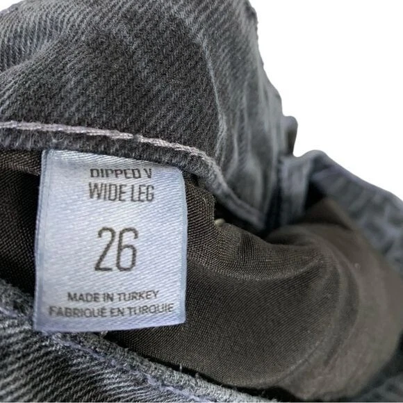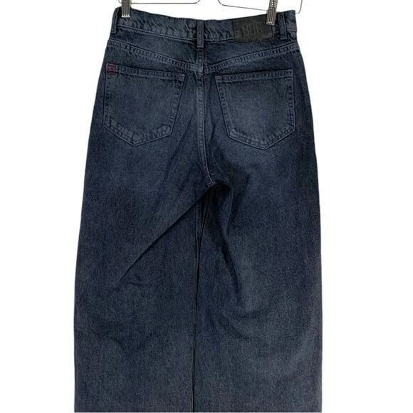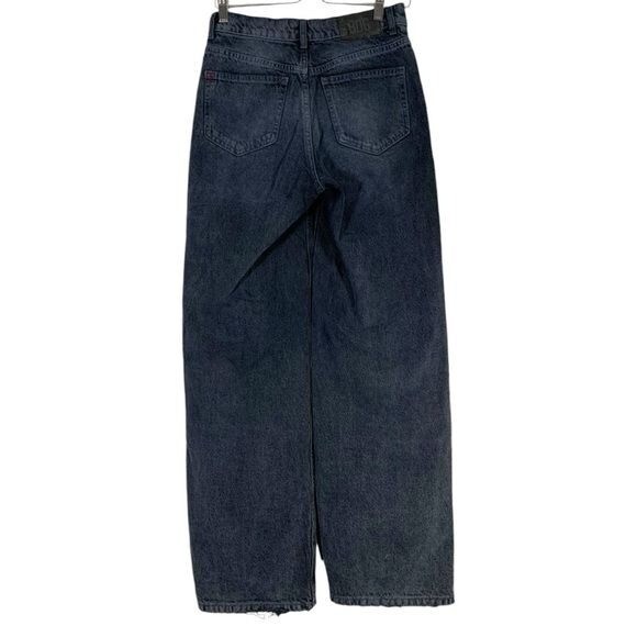 Gently pre-loved Urban Outfitters BDG Dipped V Wide Leg Jeans Size 26 in dark indigo Features: 100% cotton denim fabric in dark indigo blue. High waist with a dipped V front waist line. Wide leg. Pockets. Zip to button closure. Approximate flat lay measurements *14" waist *17" hips *9" front rise *31" inseam J11 style tags: baggy, skater, relaxed fit, grunge, casual, y2k
