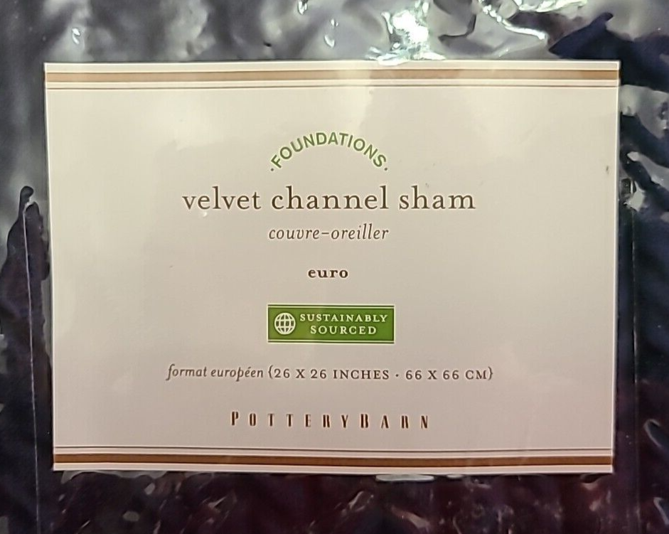 VELVET CHANNEL SHAM EURO 26X26IN TWILIGHT BLUE POTTERY BARN Add a touch of luxury to your bedroom with this stunning Euro square pillow sham from Pottery Barn. The velvet channel design in a beautiful Twilight Blue color is sure to complement any bedding set. Measuring 26 inches in length and width, this pillow sham is perfect for adults who want to add a classic style to their bedroom. Crafted with care, this pillow sham is made with high-quality materials and is machine washable for easy care. The envelope opening and solid pattern make this pillow sham an elegant addition to your bedding collection. Plus, with STANDARD 100 by OEKO-TEX certification, you can rest assured that this pillow sham is free from harmful substances. Upgrade your bedroom with this luxurious pillow sham from Pottery Barn.