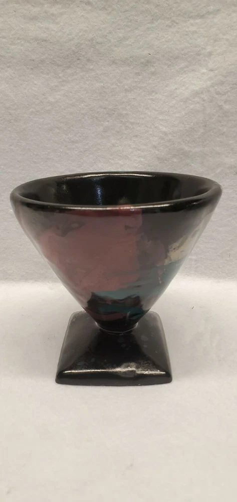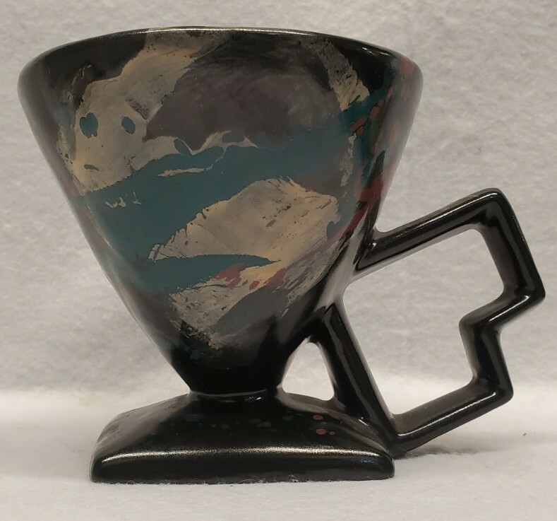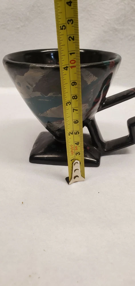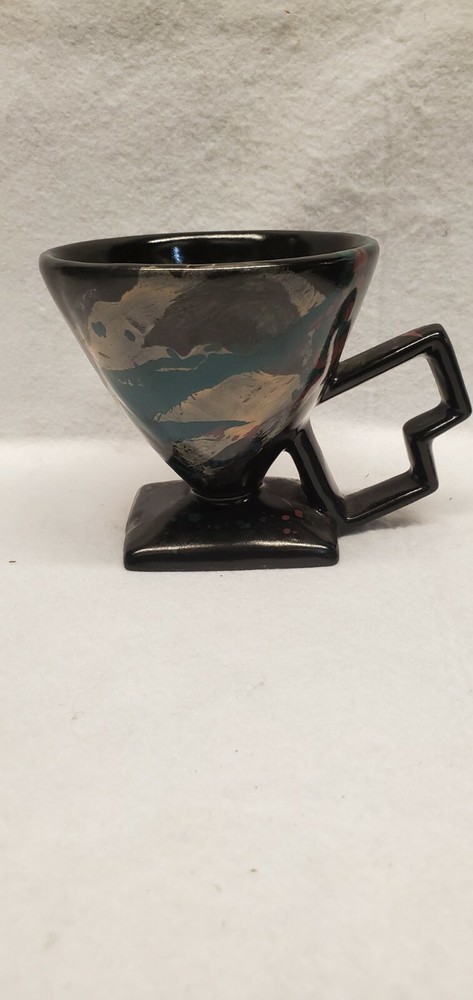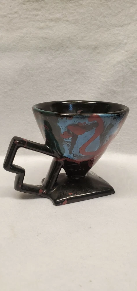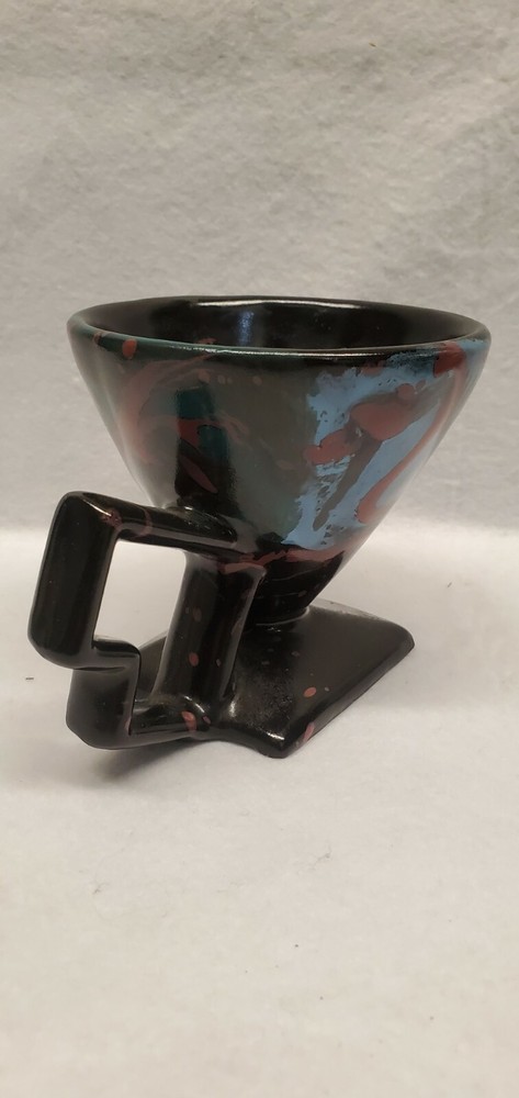 VINTAGE GLAZED POTTERY ABSTRACT SHAPED PEDESTAL MUG. Condition is "Used". Shipped with USPS Priority Mail. All items sold are as is .pictures show condition of items . I provide information on any damage as needed .Please ask any questions before purchasing. All items are used vintage or listed new. I try to take the best pictures to show the quality and condition of each item. Most measurements are in the pictures with the tape measure provided. Please ask any questions. Please make an offer . Thank you .