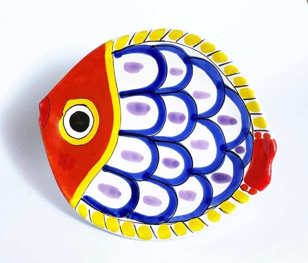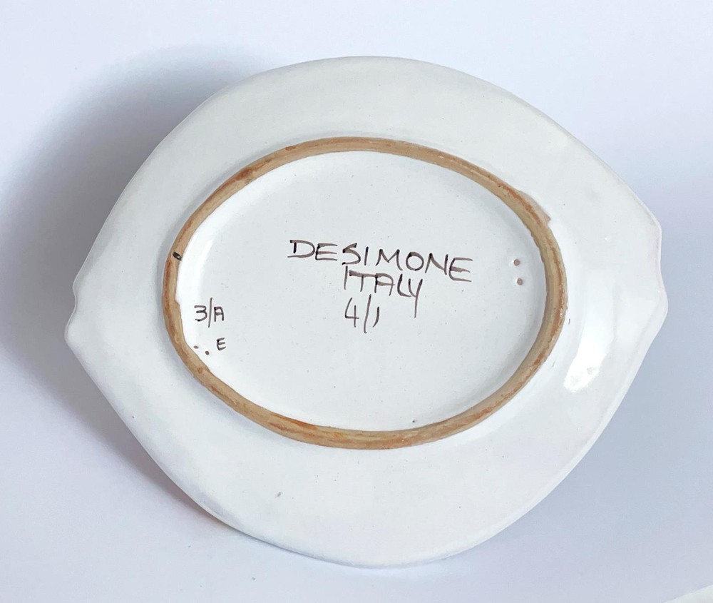 ebay BUY WITH CONFIDENCE - ALL ITEMS PROFESSIONALLY PACKAGED TO THE HIGHEST OF STANDARDS Shop threetreefrogs Add threetreefrogs to favourites Contact threetreefrogs X X X X WONDERFULLY BOLD & VIBRANT DESIMONE ITALIAN POTTERY FISH PLATE Presenting a magnificent vintage Desimone Italian Studio pottery fish shaped plate exquisitely hand painted with a delightfully bold and bright pattern. This striking piece has been beautifully hand decorated with a wonderfully bold and dynamic modernist pattern rendered in vibrant red, blue, yellow and purple glazes atop the crisp white body. The head of the fish is finished in a radiant red glaze detailed with a large black eye. Brushed stripes of sun burst yellow trim the body while arcs of blue accented with splashes of purple form the creatures fin. A vibrant red tail perfectly balances the design. This harmoniously balanced yet magnificently exuberant example of vintage Desimone pottery is an absolute delight to behold. It is near impossible to gaze upon this joyful piece and not smile! PLEASE NOTE: Due to the lead glazes used to decorate vintage Desimone pieces this plate is not suitable to be used for food consumption. SIZE: This impressive piece measures approx 215mms in length x 185mms in width. CONDITION: This superb example is presented in excellent vintage condition with no chips, cracks or repairs. The rich glazes remain bold and vibrant. This piece has been very well cared for and presents beautifully. MARKS: This stunning plate is beautifully signed to the reverse in brushed lettering "Desimone Italy 4/1". A superb addition to any vintage Italian pottery or Desimone collection A wonderfully bold and vibrant vintage feature for any home A perfect gift idea for the discerning admirer of fine quality vintage objects of sheer beauty Shop Glass Shop Jewellery Shop Pottery & Ceramics Payment Shipping About TTF A vast array of convenient payment options are now available through eBay including Afterpay, Credit Cards and Paypal. International buyers are most welcome, please check the payment options available to your country. We appreciate prompt payment finalised within 3 days of purchase or Auction end. If you have a particular request please contact us prior to purchase. Buyer to pay postage which is charged at cost price as calculated by the Australia Post calculator. We do not charge any handling fees. Packaging is supplied at BELOW cost price: $3 for Australia / $5 for International. We use PREMIUM grade packaging materials including: • High grade double sided bubble wrap • Enviro peas (void fill) • Sturdy boxes... absolutely no satchels! We are more than happy to combine postage on multiple purchases wherever it is safe to do so. ALL items are professionally packaged to ensure their safe arrival. WE ARE UNABLE TO OFFER PICK-UP. We LOVE presenting you with quality art glass, exquisite jewellery, beautifully designed vintage objects and unique collectible items. We take great pride in accurately describing our products and providing you with comprehensive images in an attempt to capture the true essence of each individual object. We strive to ensure our buyers are happy so we can all enjoy a positive eBay experience. We hope you enjoy browsing the curated collection of quality objects showcased in our store. We look forward to dealing with you! WE SHIP WORLDWIDE! All items are professionally packaged to the highest of standards to ensure their safe arrival Shop threetreefrogs Newly listed Ending soon Add threetreefrogs to favourirites Contact threetreefrogs All photographs and descriptions are the property of threetreefrogs and protected by Copyright Laws. Copying any part of this listing and using it your own is plagiorism and against eBay policy. Copying or modifying content created by others could expose you to eBay restrictions and /or legal liabilities. Get images that make Supersized seem small. Showcase your items with Auctiva's Listing Templates! THE simple solution for eBay sellers. Track Page Views With Auctiva's Counter