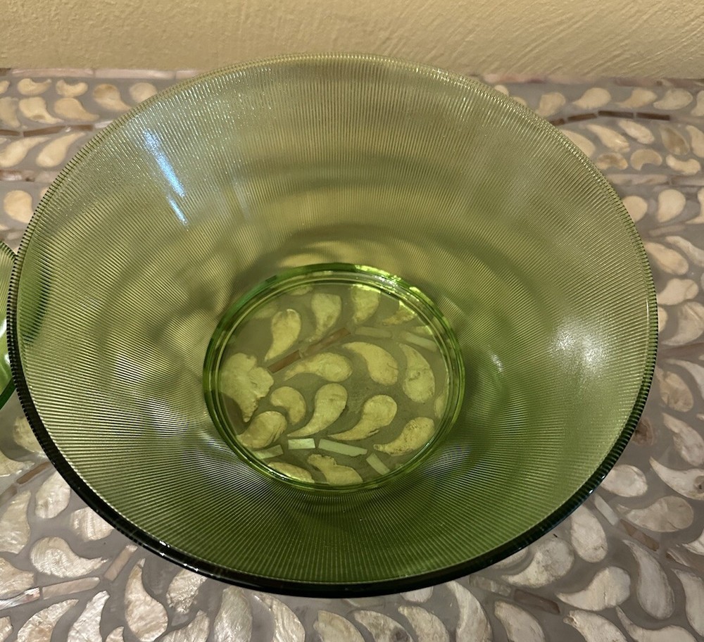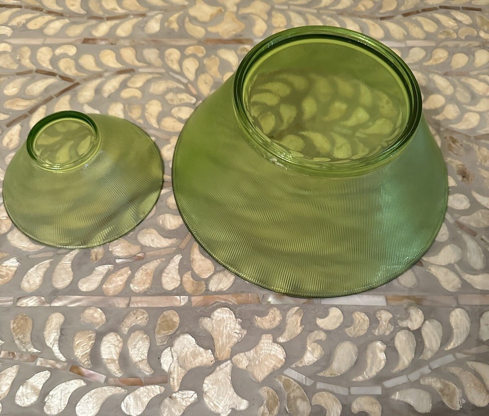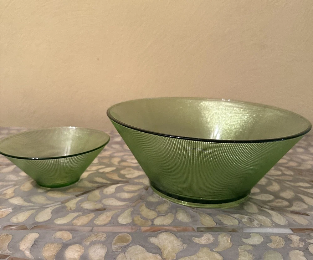 This set of Federal Glass bowls will add a touch of vintage charm to your dining table. The ribbed design and mirrored features make them a stylish addition to any collection. The set includes one large chip bowl and one small dipping bowl, perfect for serving snacks or condiments. The bowls are made of high-quality glass, ensuring durability and longevity. Whether you're hosting a dinner party or enjoying a casual meal, these bowls are sure to impress your guests.