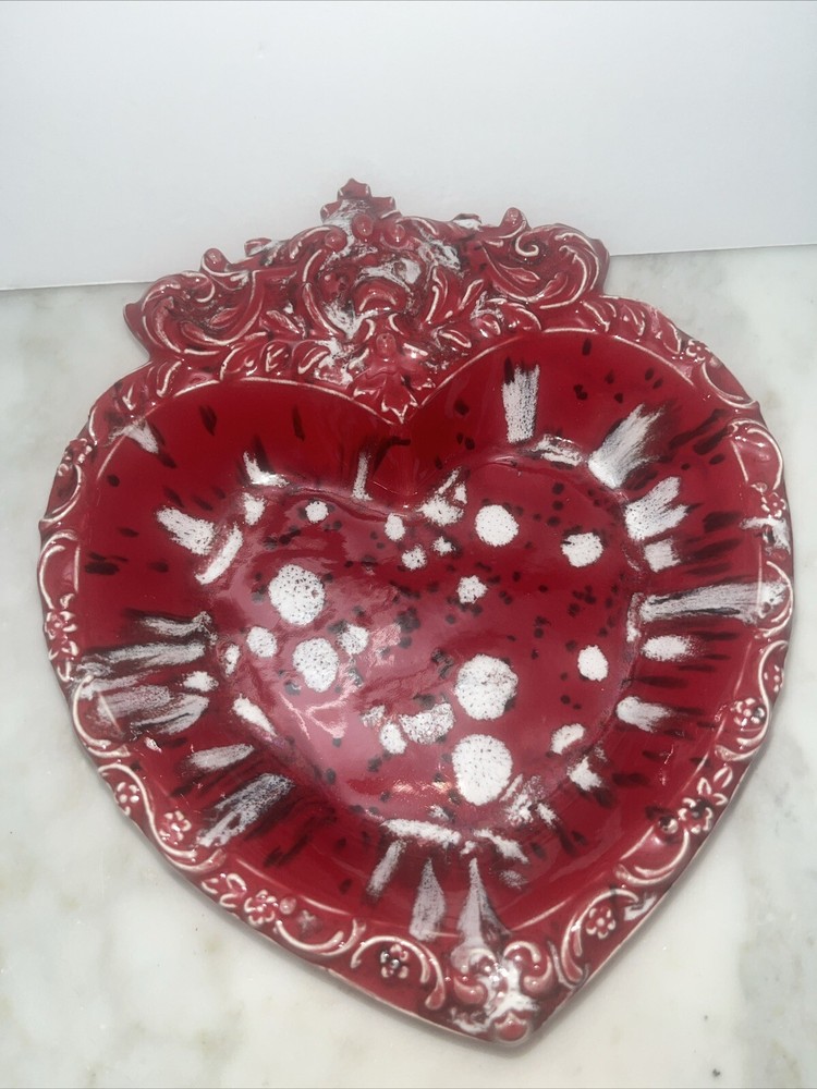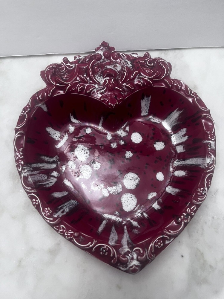 VINTAGE GLAZE Trinket Dish Bowl POTTERY STUDIO ART Signed Heart Shaped Unique. Condition is Used. Shipped with USPS Ground Advantage.