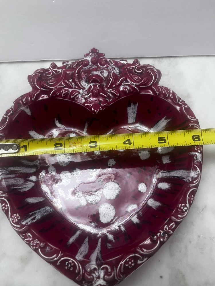VINTAGE GLAZE Trinket Dish Bowl POTTERY STUDIO ART Signed Heart Shaped Unique. Condition is Used. Shipped with USPS Ground Advantage....