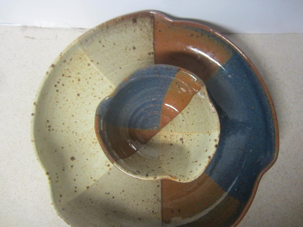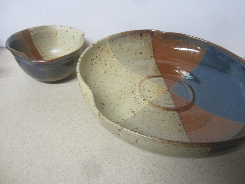 Nice used condition, no chips or cracks- platter measures about 13 "-- small bowl stands about 3 " - see pictures for more information and a better description invray951