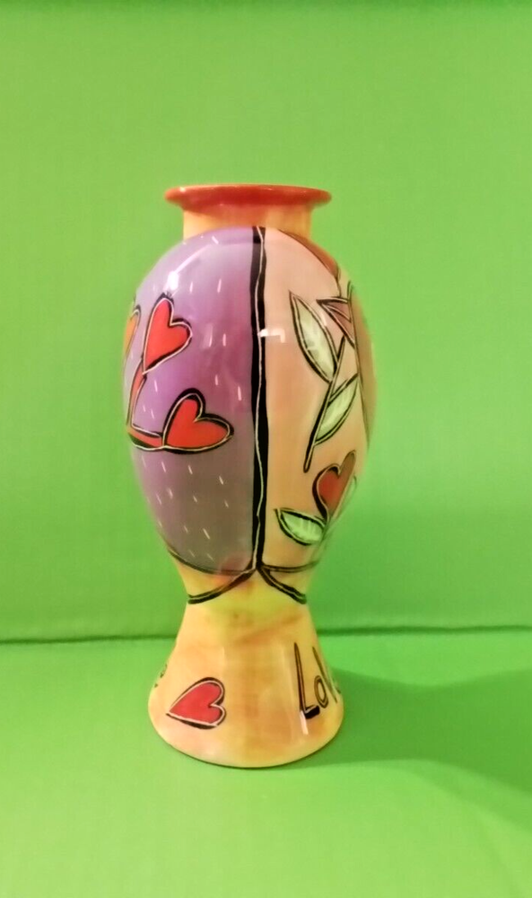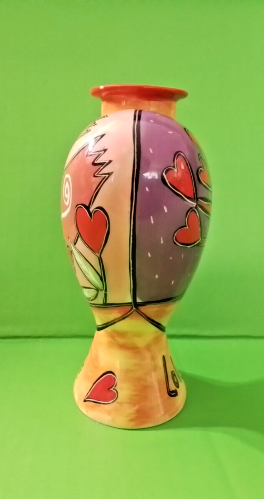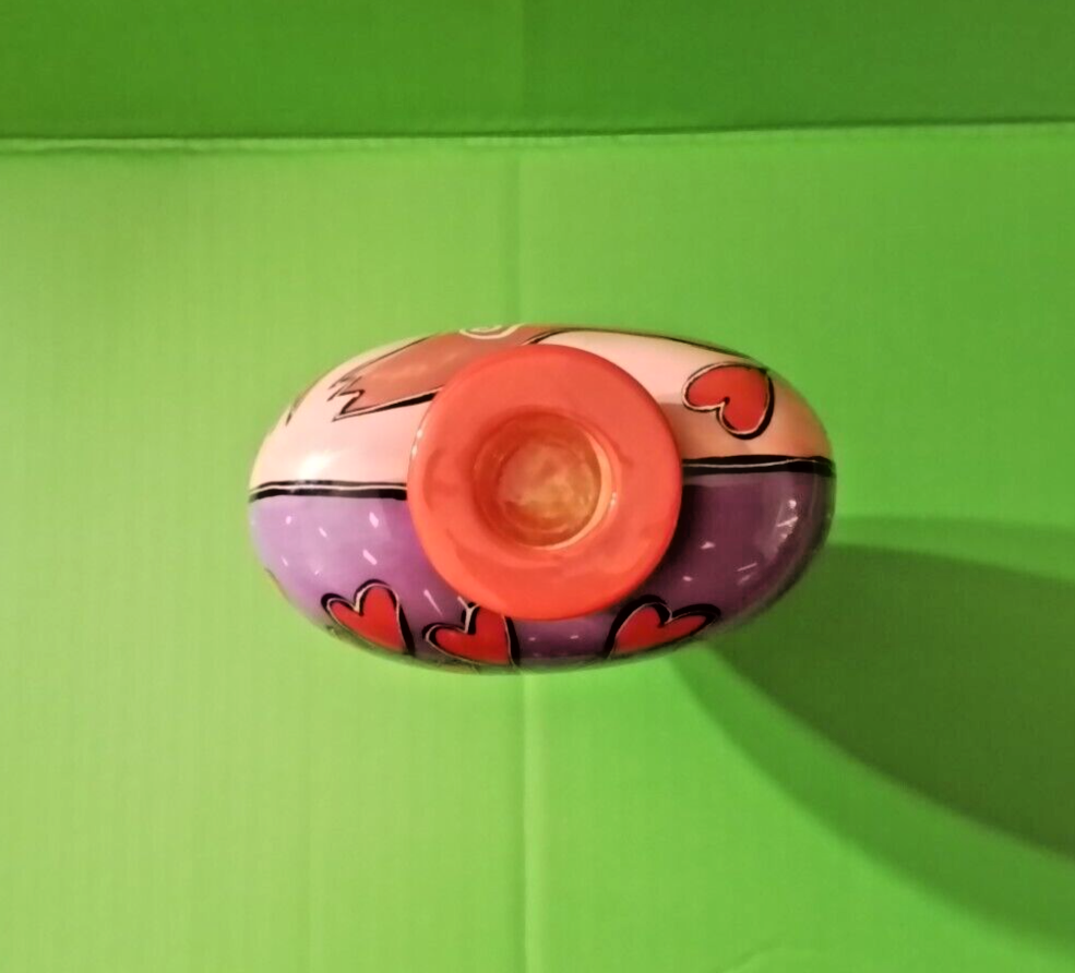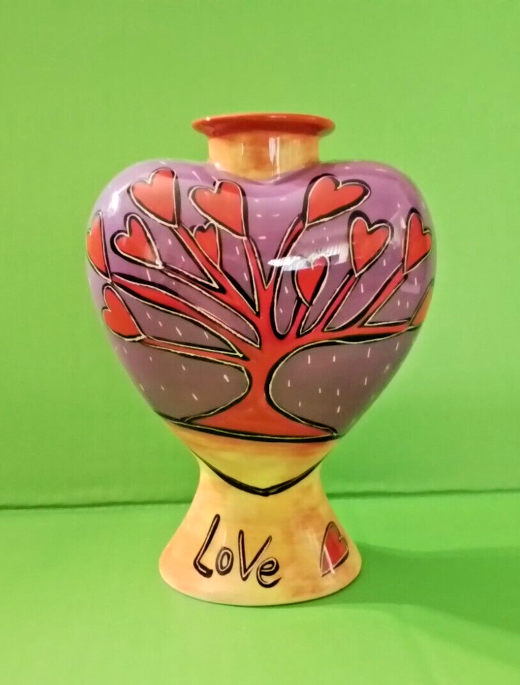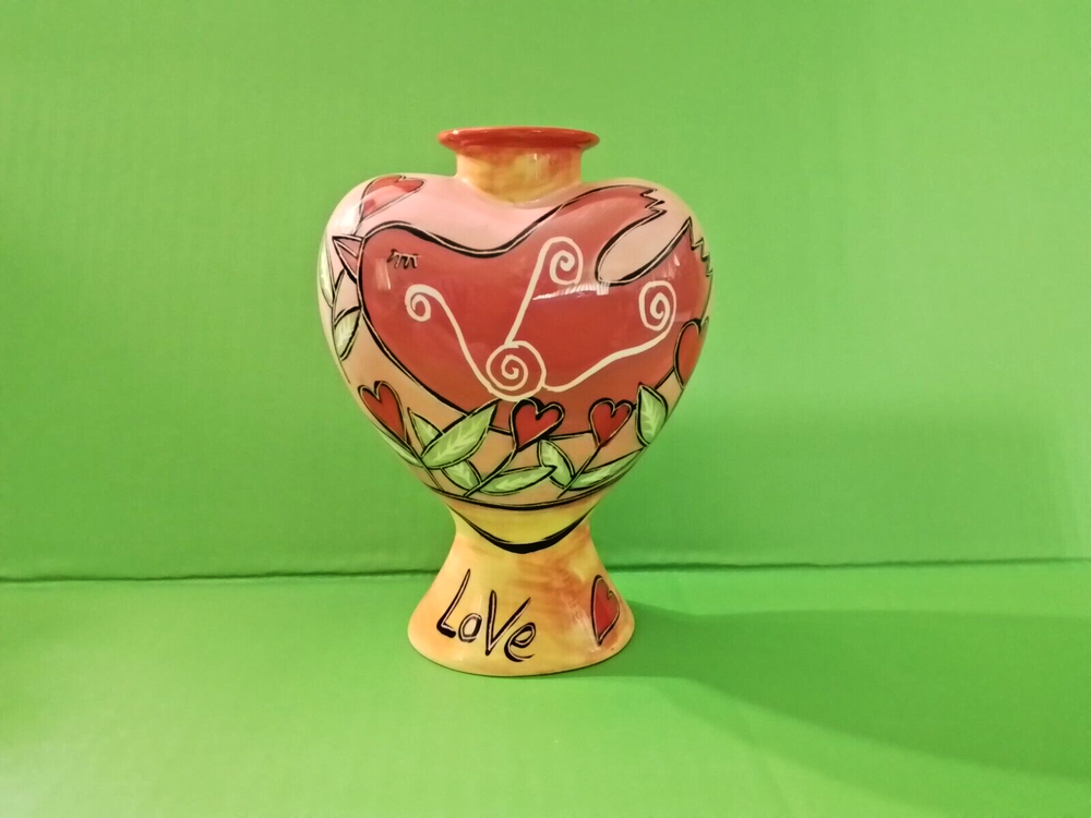 This heart shaped candle holder is in excellent condition. It is 7 inches high, 3 1/2 inches deep and 5 inches wide. This hand painted candle holder has red love bird on one side and a heart tree on the other. The word LOVE is on the bottom on both sides. To make certain that you are completely satisfied with your purchase, it is strongly recommended that you review the photos as they are part of the description and condition of the item. What you see pictured is the same item that you will be receiving. So, if there is something that is not clear to you in the photos, (such as condition, size, etc.) please message me with your question. There are no returns because of a few dishonest buyers. Not responsible for factory defects.